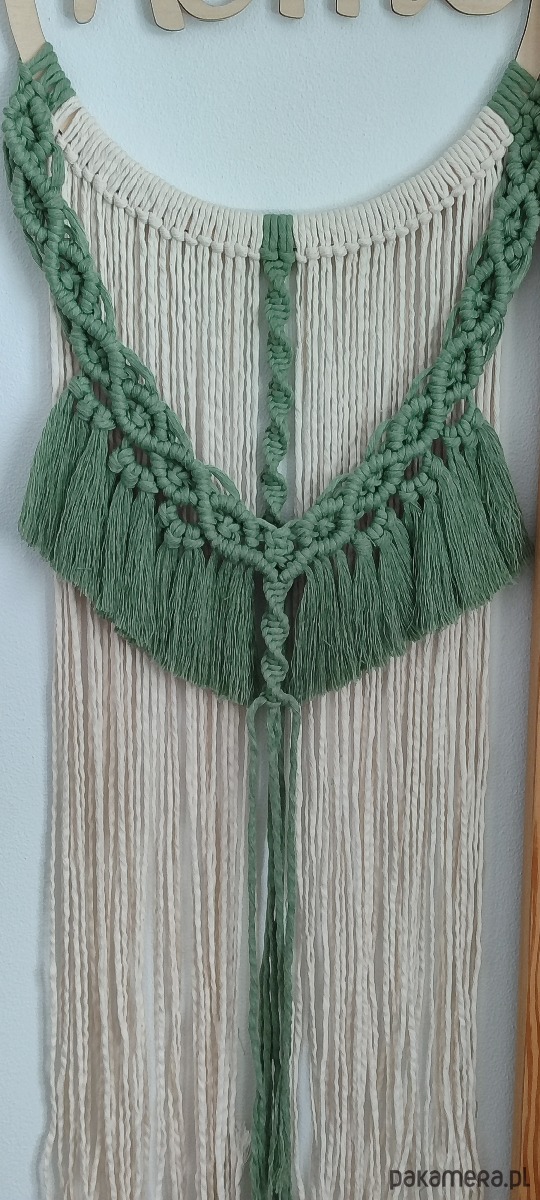 Wykonany ręcznie ze sznurka bawełnianego skręcanego o grubości 3 mm.
