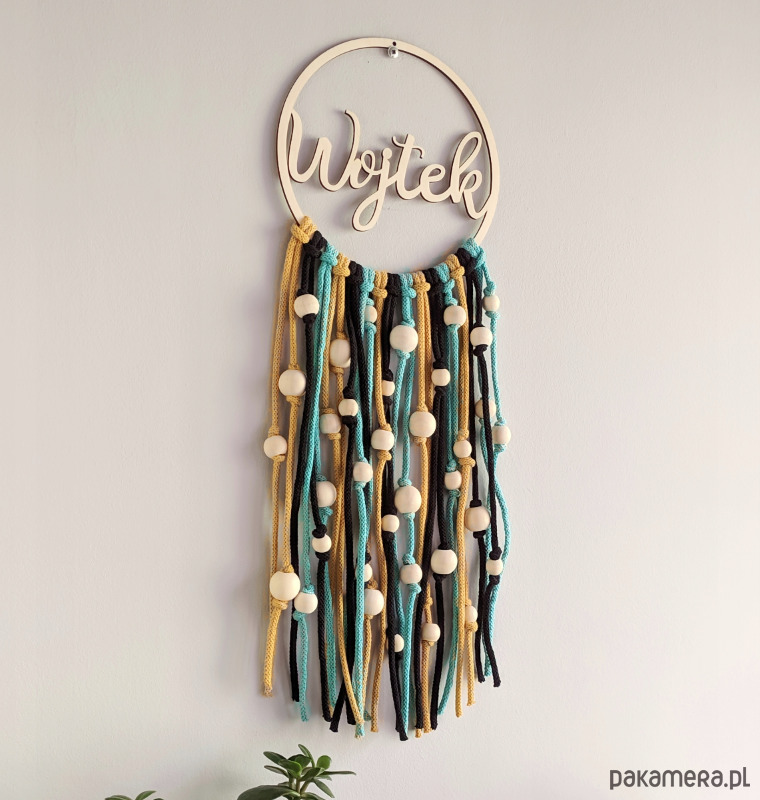 Napis na łapaczu może być dowolny: imię, metryczka urodzenia, data ślubu, kilka imion, nazwisko, napisy "Home", "Love" - co tylko zapragniesz :) W przypadku gdy napis składa się z kilku wyrazów, każdy wyraz umieszczamy w osobnej linijce (zalecamy do 5u słów).