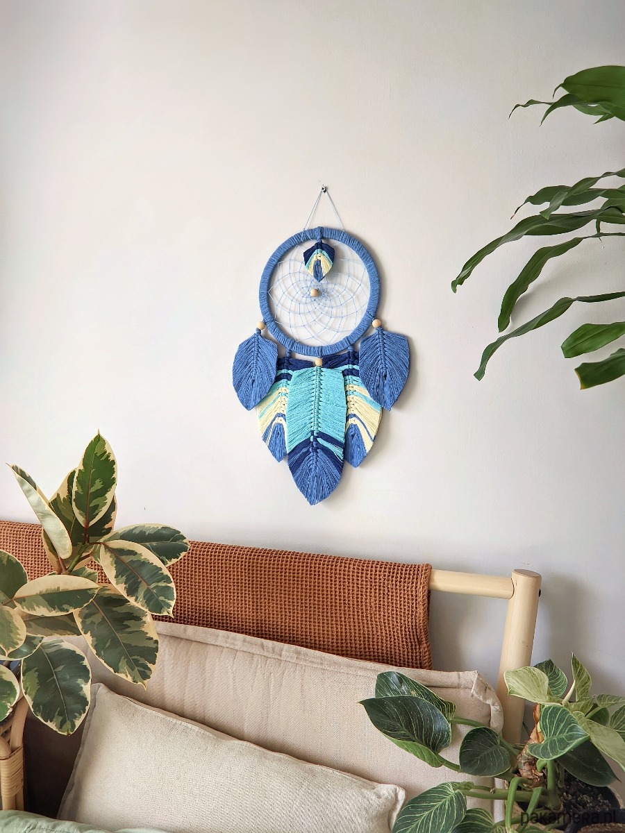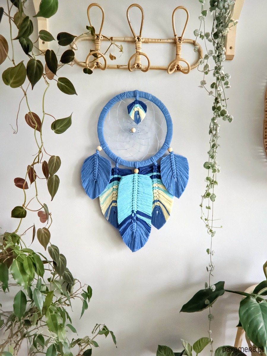 Niebieski łapacz snów Makrama, prezent dla chłopca, chłopaka, mężczyzny