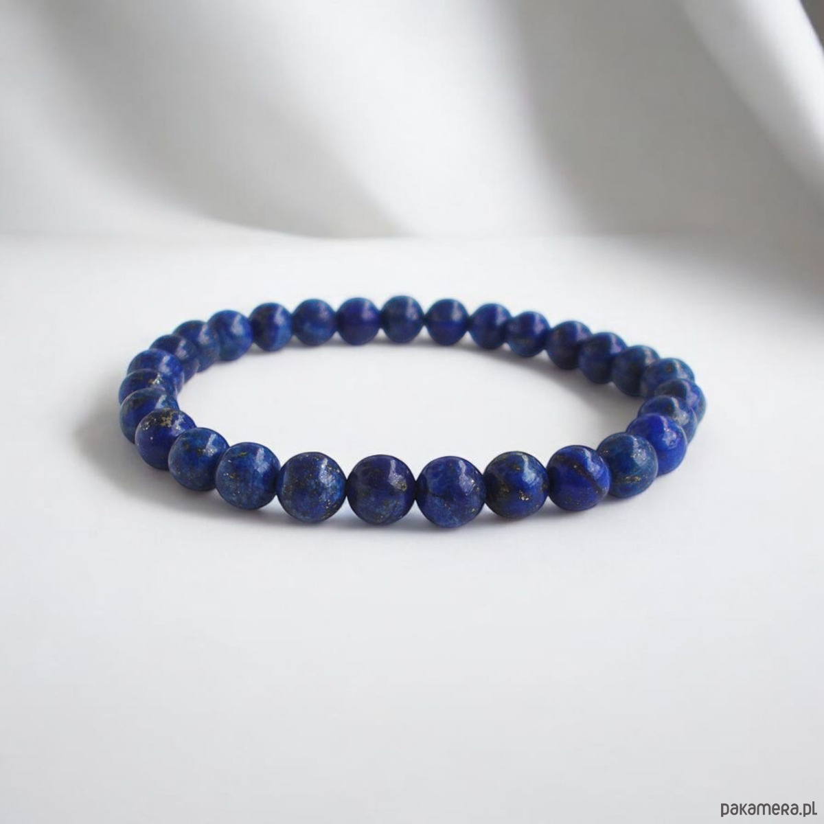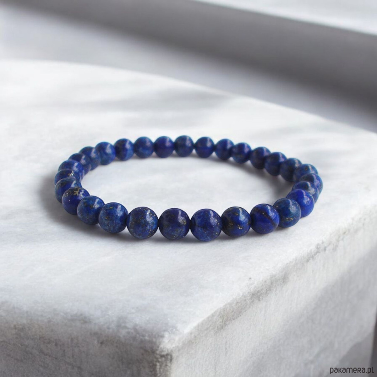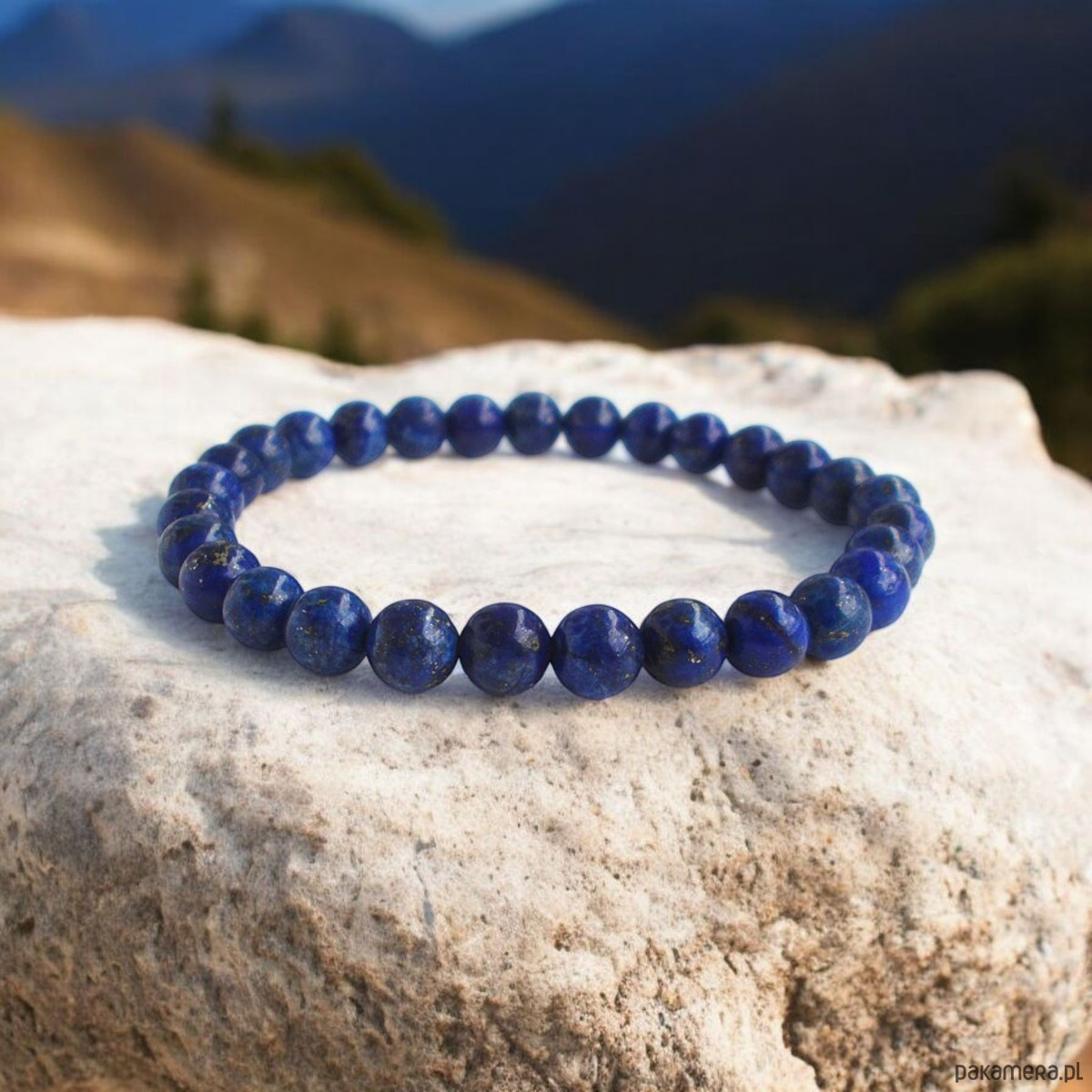 Stylowa bransoletka wykonana z granatowych kul lapis lazuli