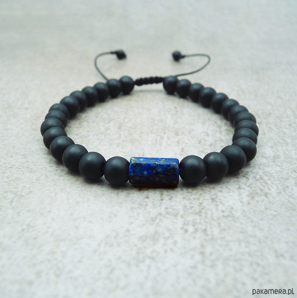 Bransoletka z czarnych, matowych kamieni i lapis lazuli