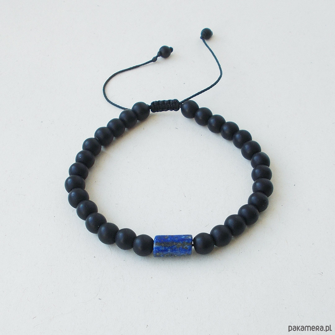 Bransoletka z czarnych, matowych kamieni i lapis lazuli
