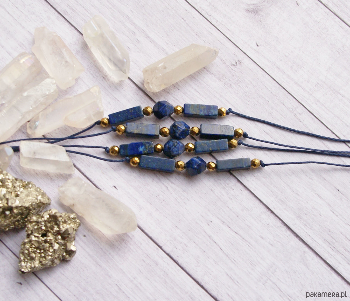 -pałeczki i fasetowany nugat lapisu lazuli, hematyt pokryty złotym filtrem