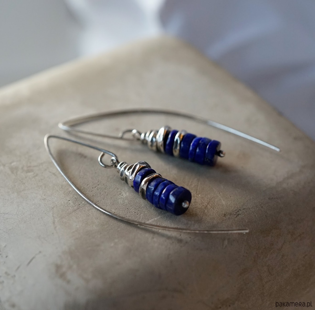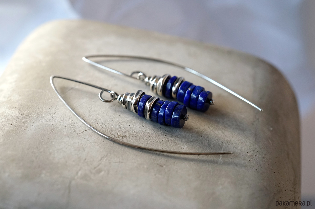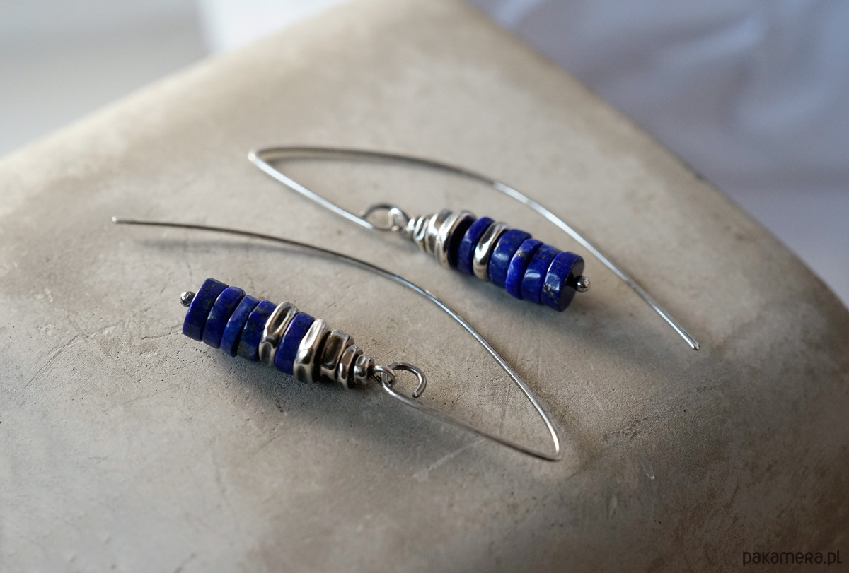 Srebrne kolczyki z lapis lazuli. Srebro oksydowane i polerowane.