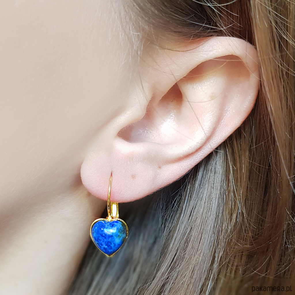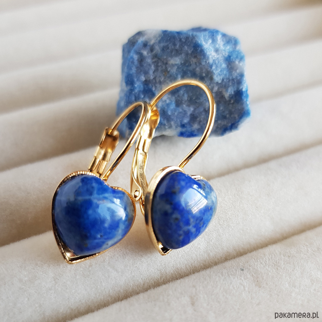 Lapis lazuli kolczyki serca / złota stal chirurgiczna