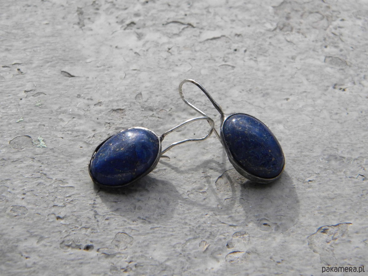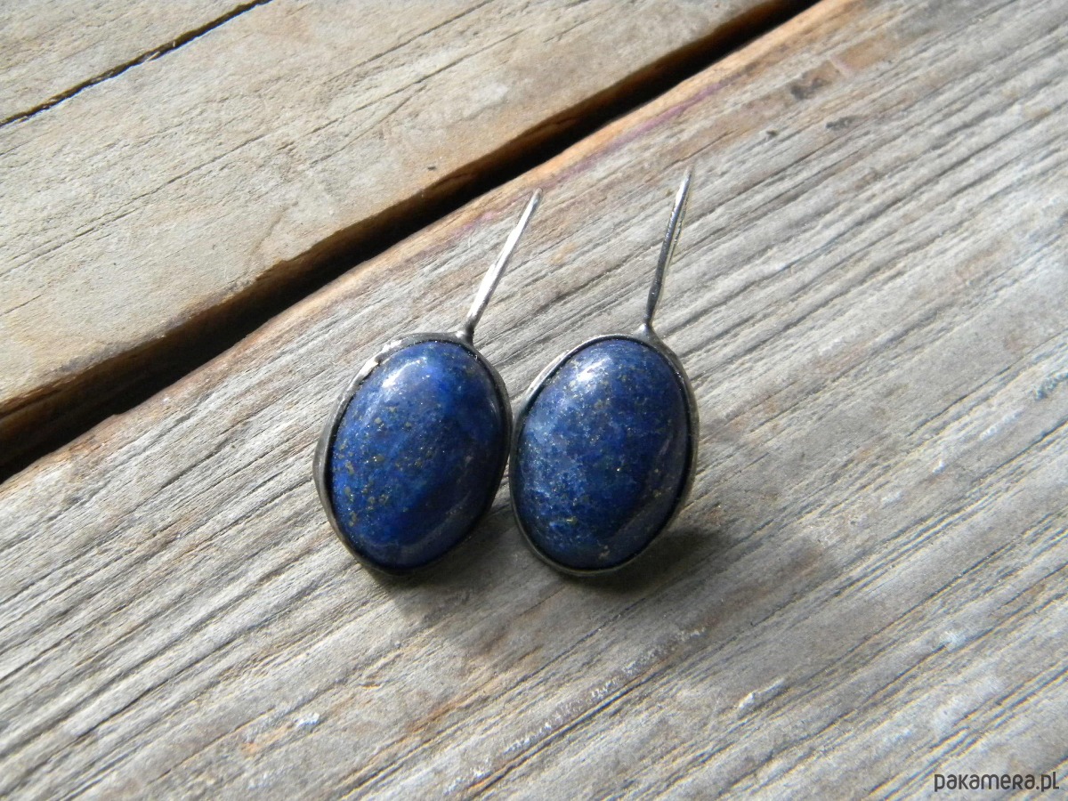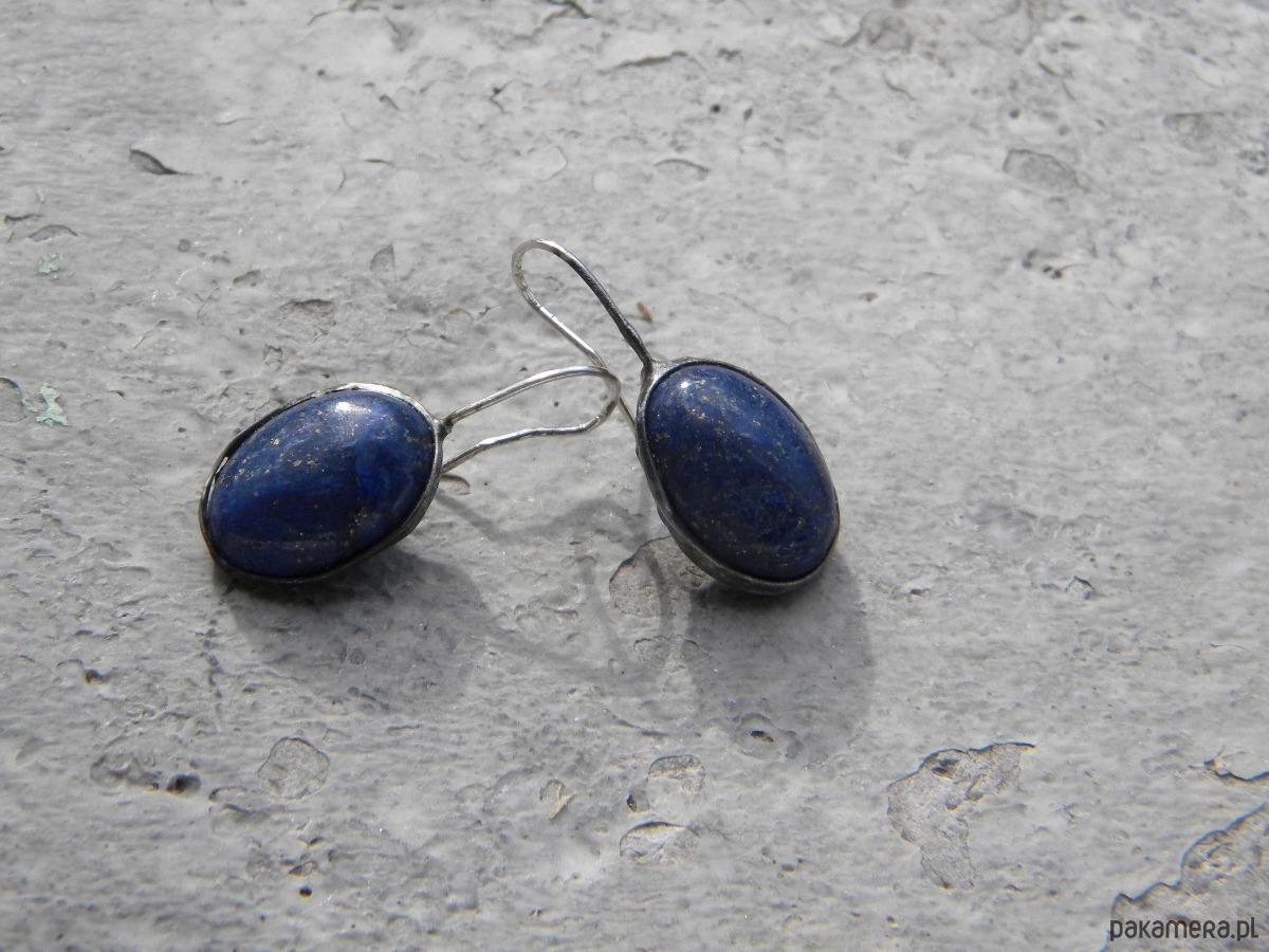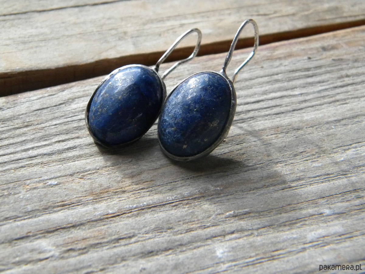 kolczyki wykonane z lapis lazuli w oprawie z ocynowanej miedzi