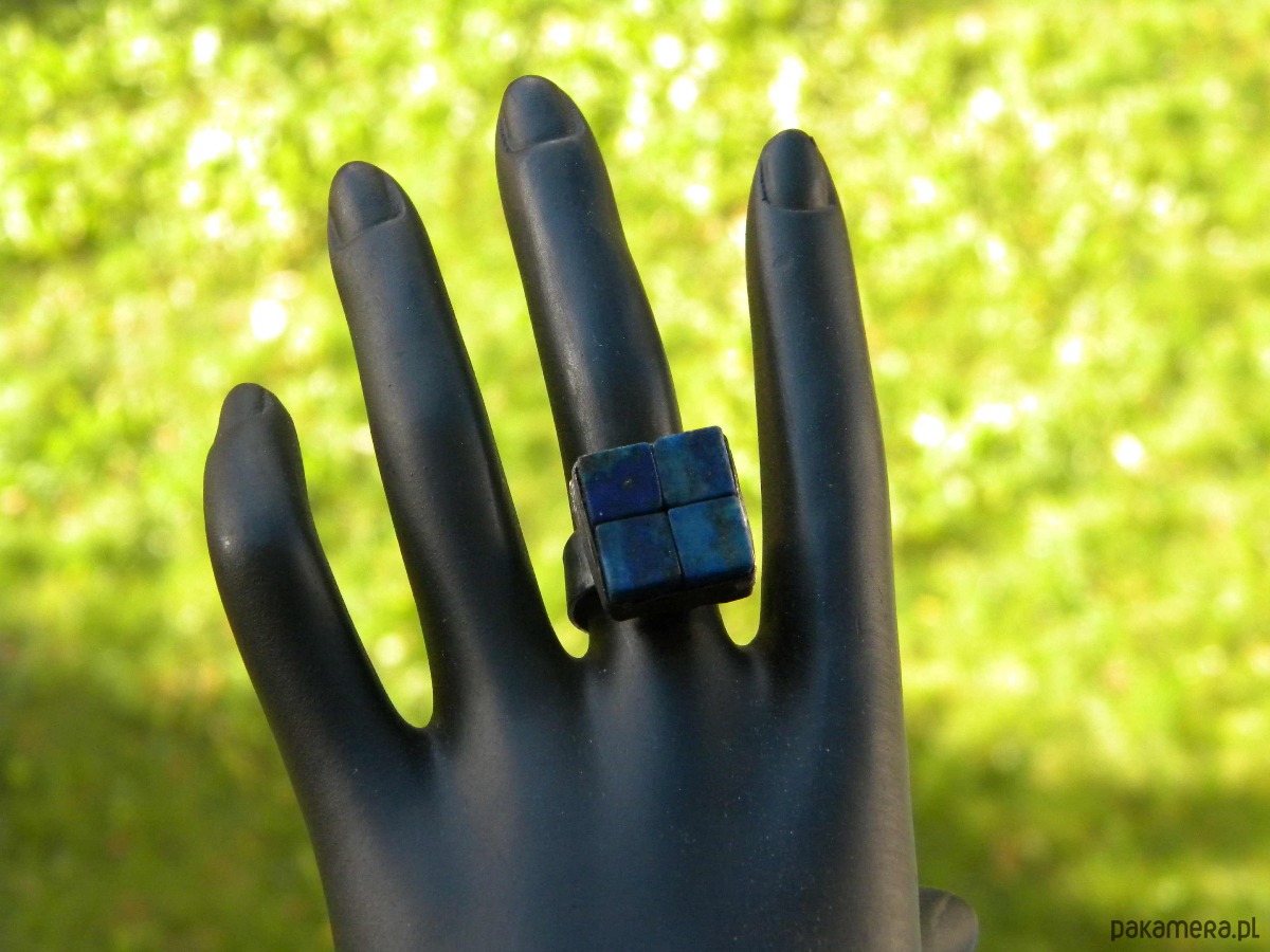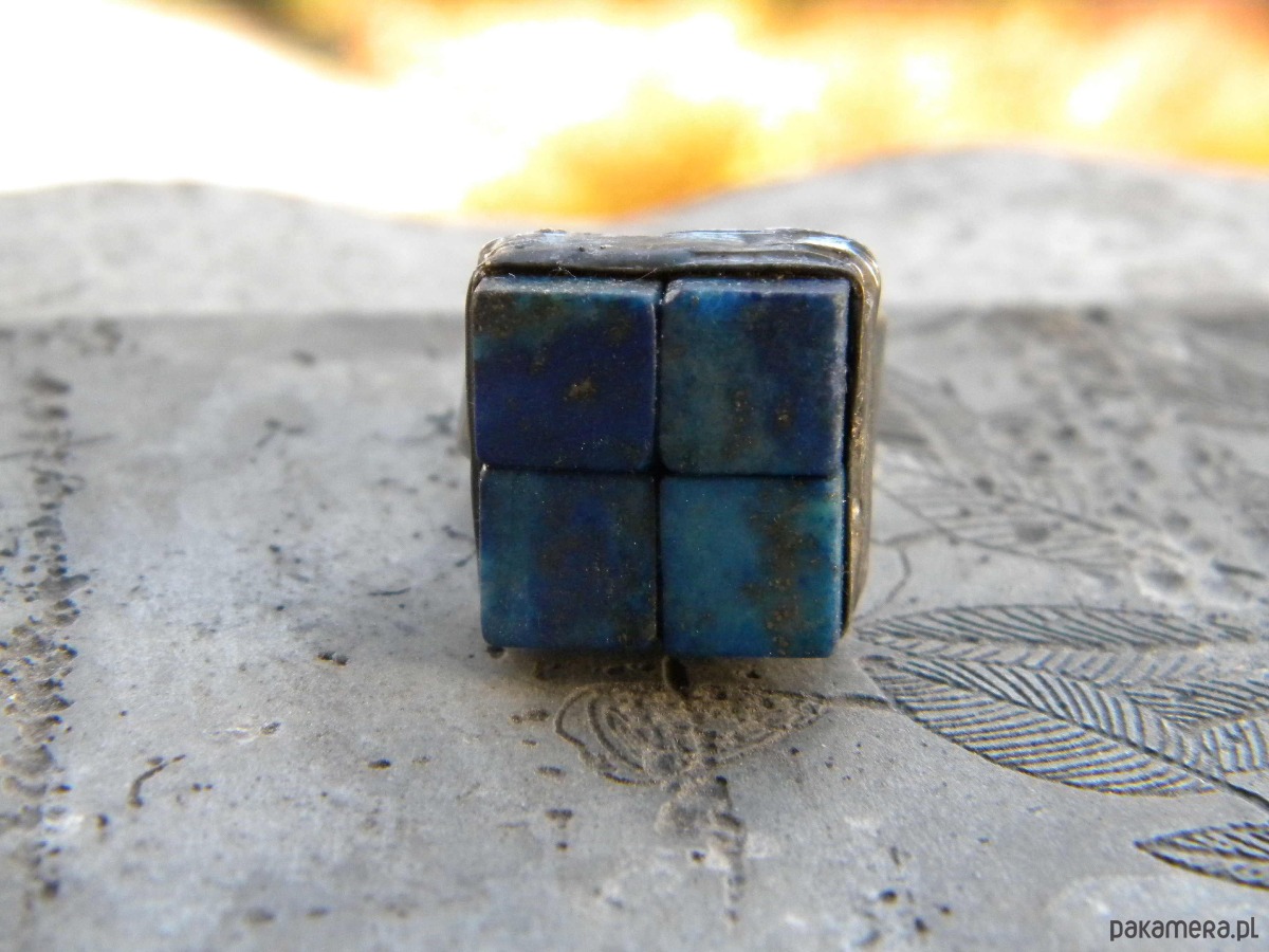 Pierścionek. kostki lapis lazuli w ocynowanej miedzi.