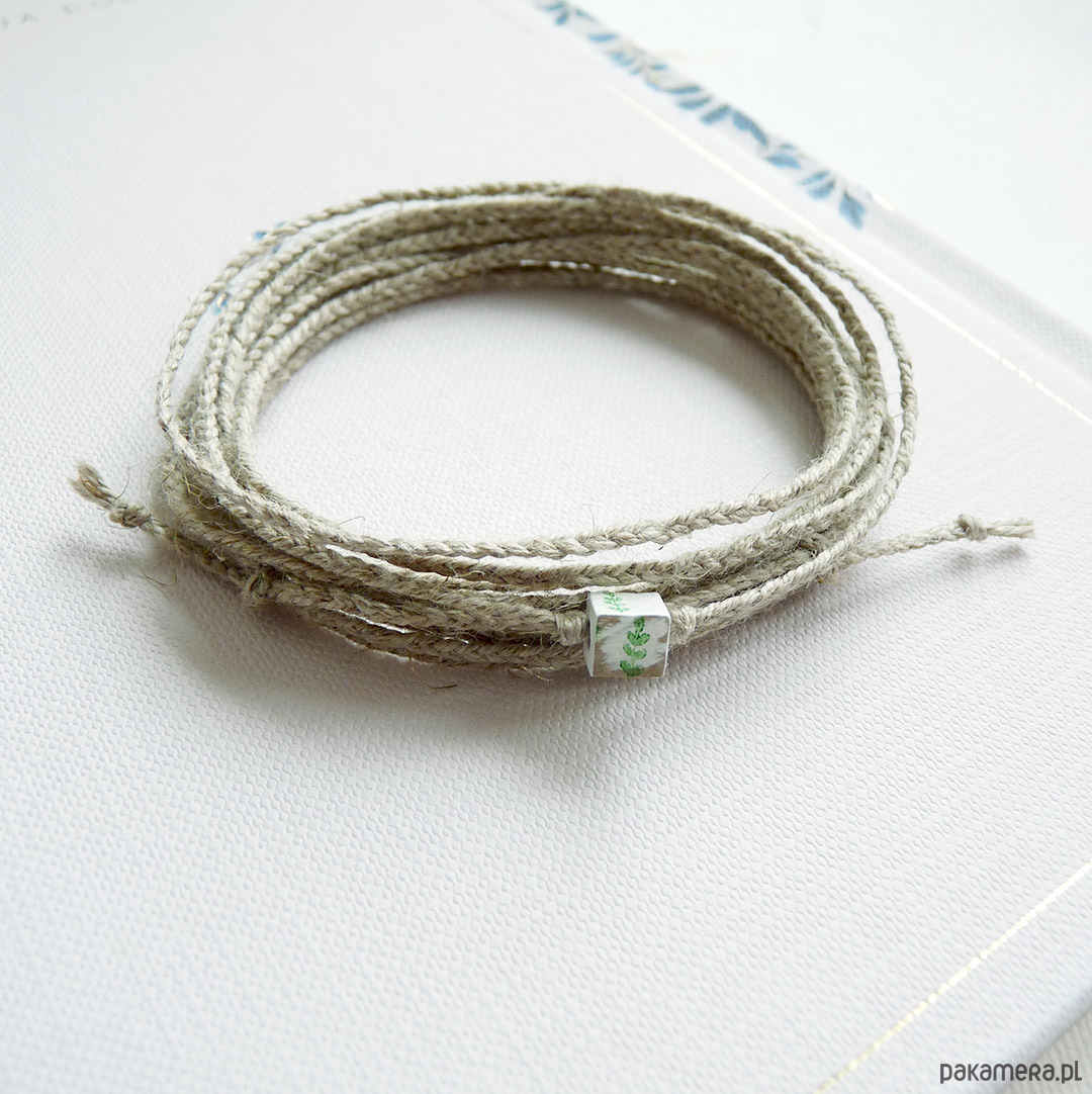 Oryginalna, naturalna bransoletka lniana z unikalnym, ręcznie wykonanym koralikiem