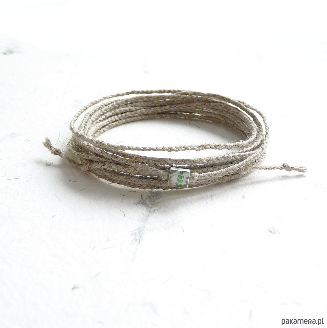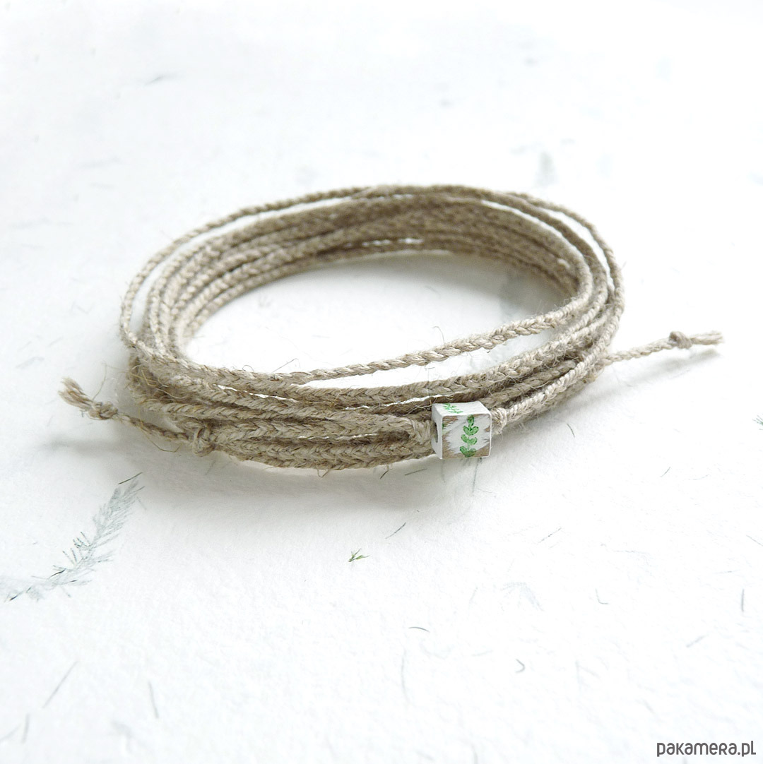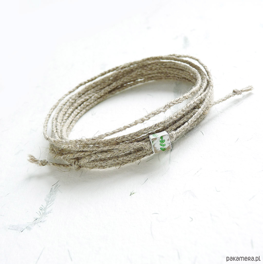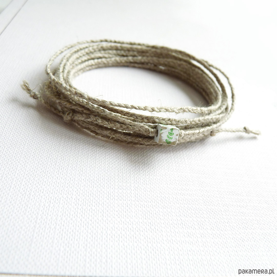 Oryginalna, naturalna bransoletka lniana z unikalnym, ręcznie wykonanym koralikiem