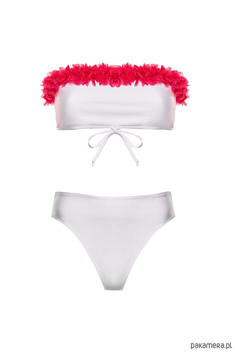 Komplet bikini biały top z kwiatami 3D Laura Flower