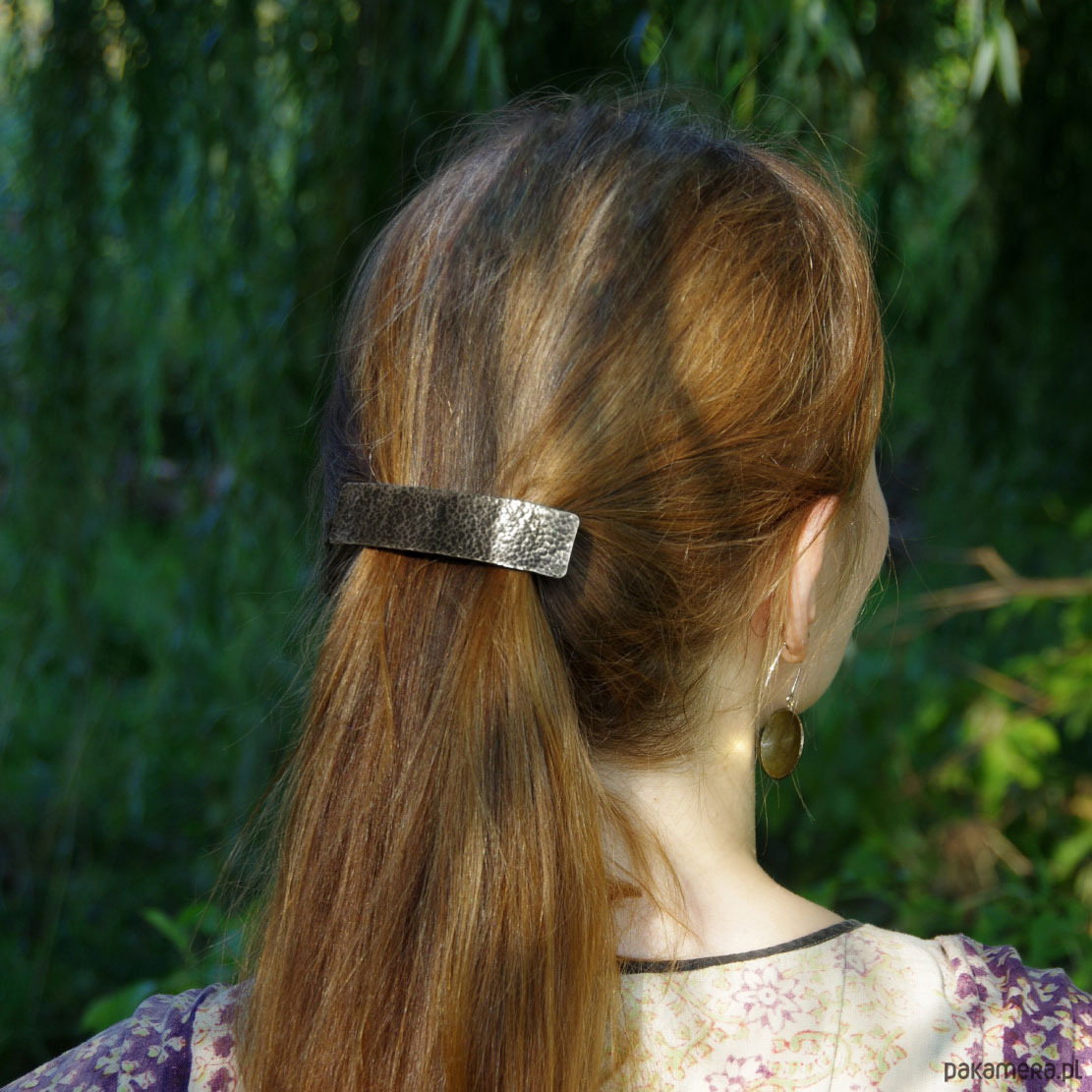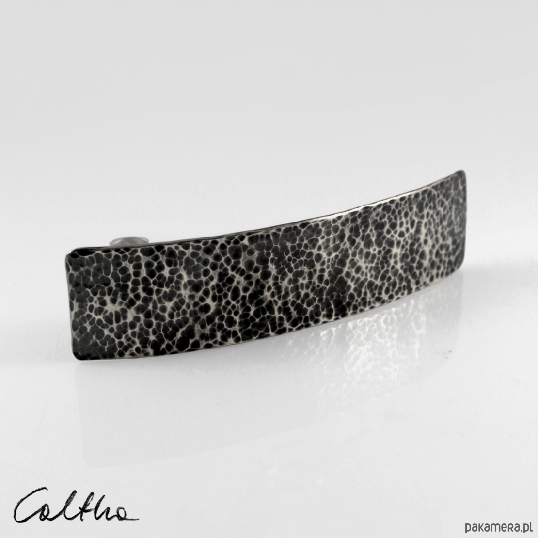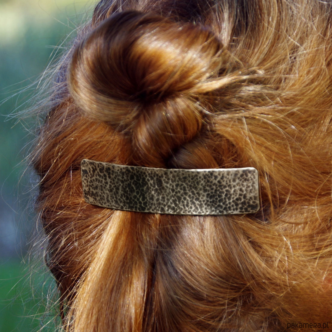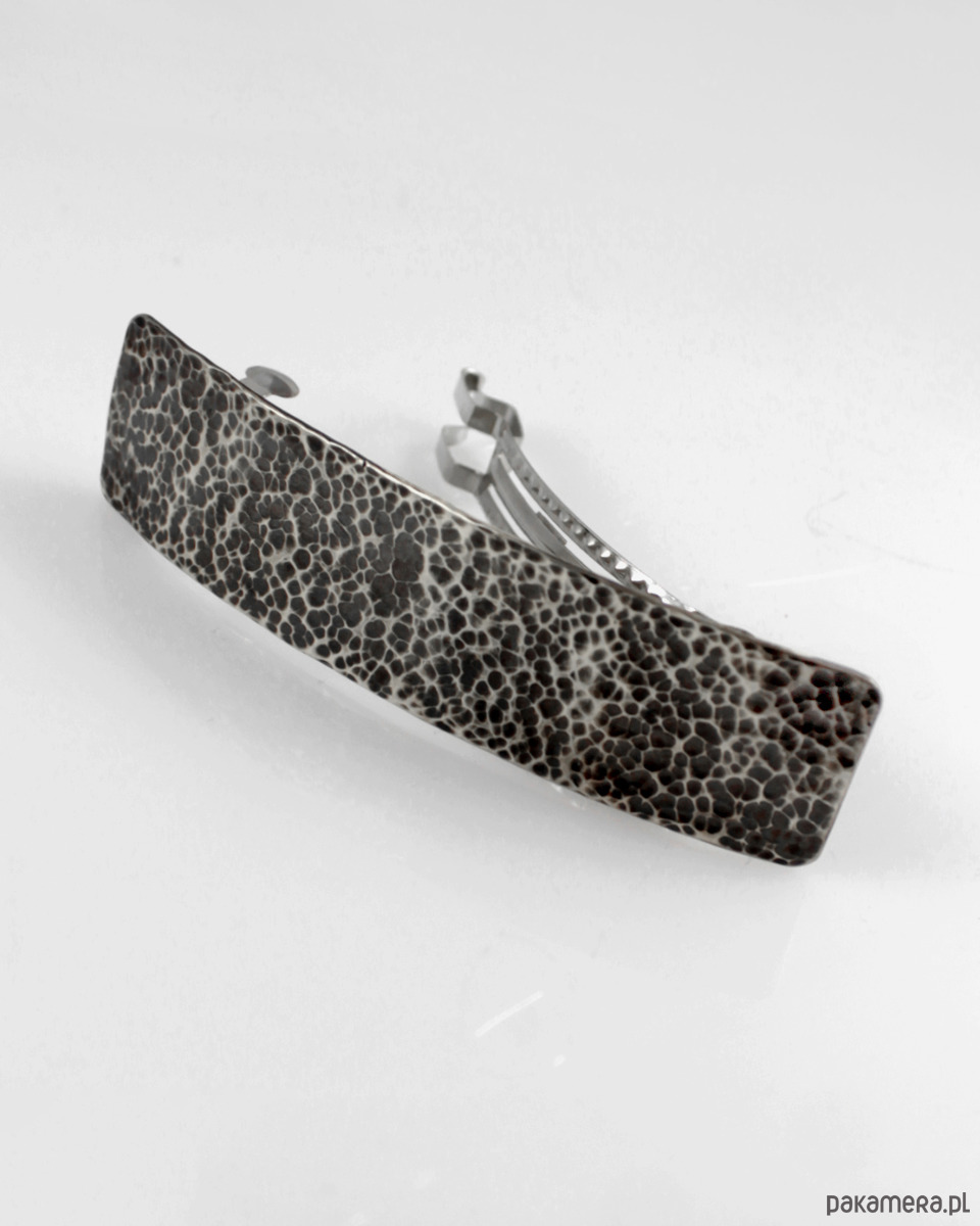 Prosta srebrna klamra do włosów o ciekawej fakturze.