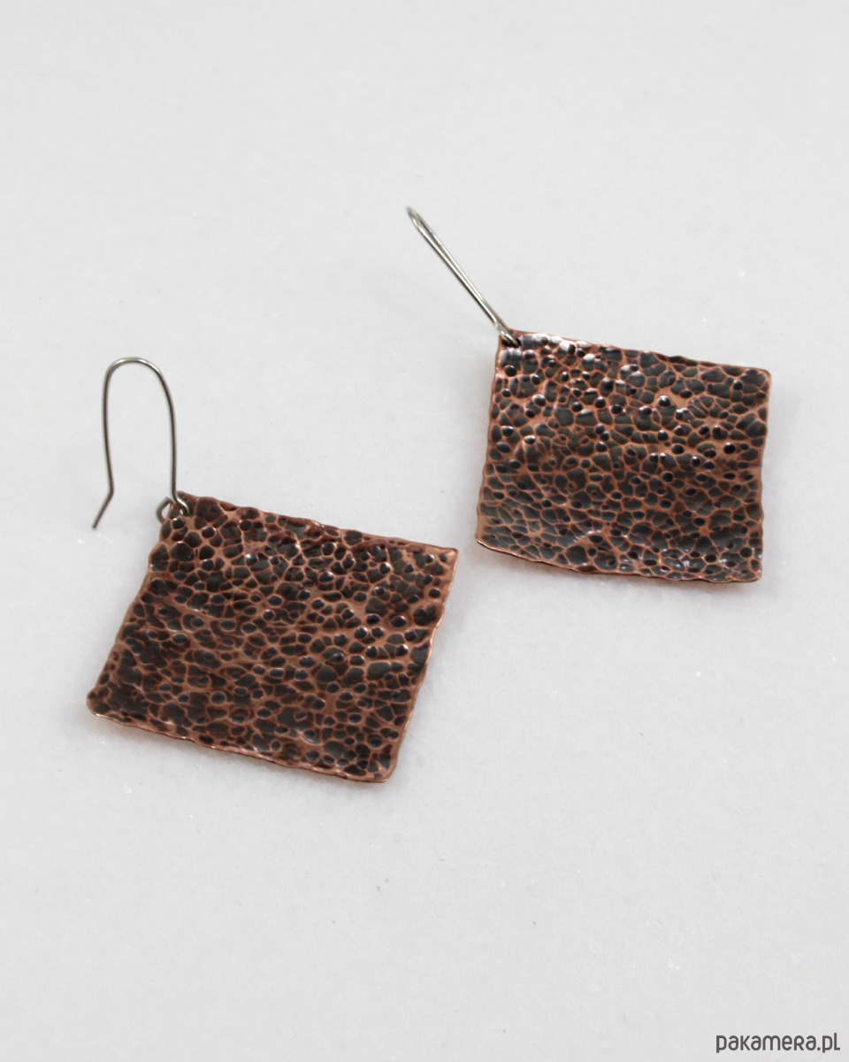 Wiszące miedziane kolczyki z ciekawym wzorem