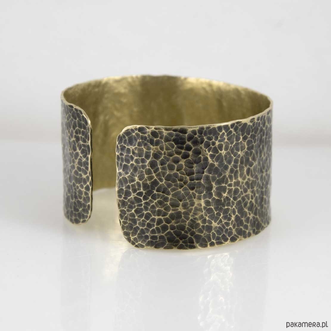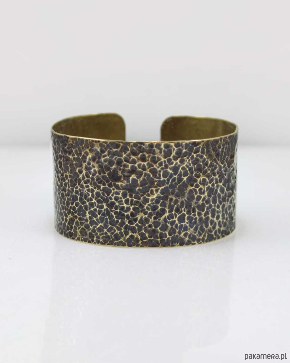 Bransoletka została wykonana w całości z mosiądzu, ma ok 3,5 cm szerokości. Wzór jest lekko podkreślony ciemną patyną uzyskaną w procesie oksydacji (bez użycia sztucznych barwników).