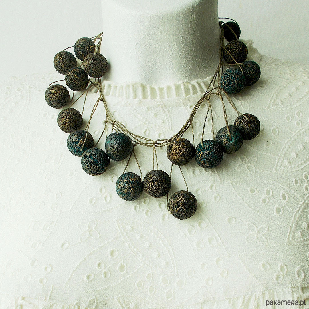 Oryginalny, duży i lekki naszyjnik na bazie naturalnego lnu