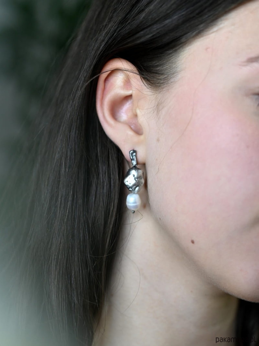 Nasze kolczyki, wykończone oksydą w kolorze grafitowym, emanują subtelną finezją, która z łatwością przyciąga spojrzenia. Surowy, industrialny charakter połączony z delikatnością perły tworzy kontrast, który nadaje tym kolczykom wyjątkowego uroku i osobliwego charakteru.