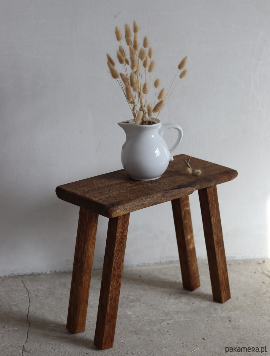 Ręcznie robiona dębowa ławeczka w rustykalnym stylu . Celowo postarzana , przecierana , o nieregularnym blacie. Idealna do przedpokoju jak i łazienki.