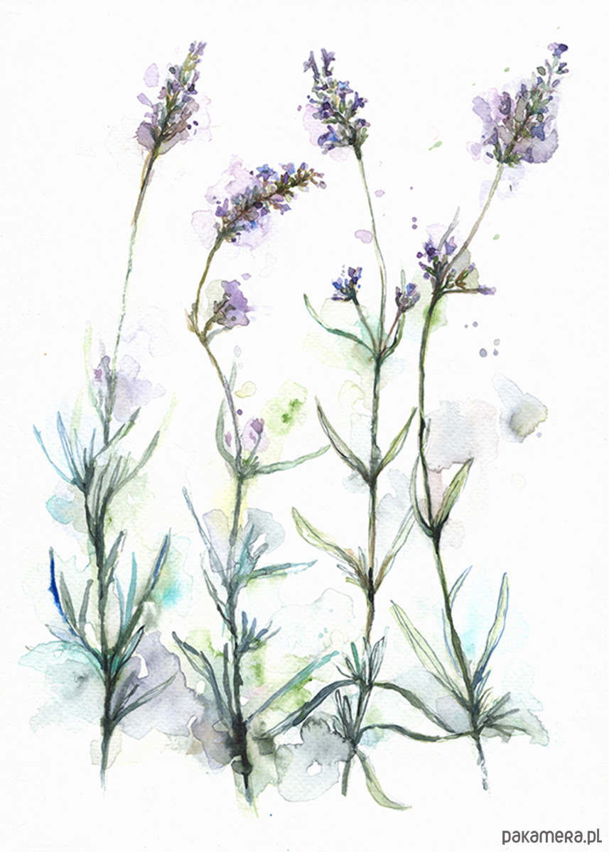 Wysokiej jakości wydruk autorskiej ilustracji przedstawiającej lawendę.