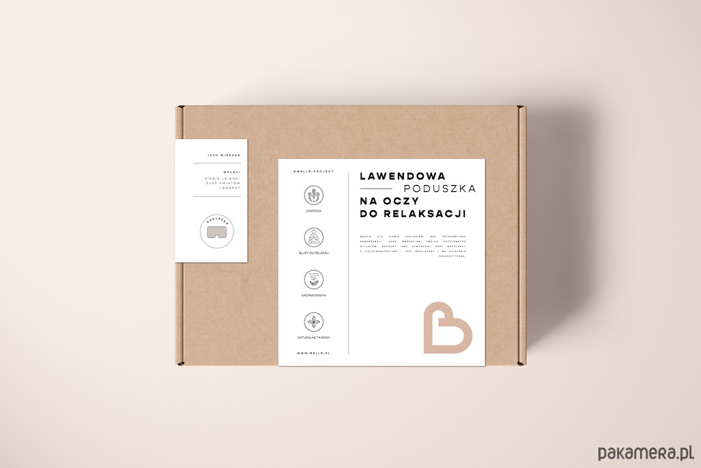 Wypełnienie suszoną lawendą daje efekt aromaterapii, który pozwala na osiągnięcie spokoju wewnętrznego. Kształt poduszki na oczy doskonale dostosowuje się do anatomii czaszki. Lawendowa poduszka może być też stosowana jako poduszka pod nadgarstek, pomagając obniżyć napięcie mięśniowe. Poduszka wypełniona jest lawendą i siemieniem lnianym.