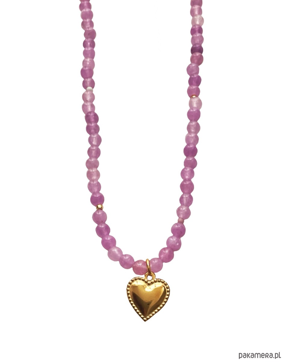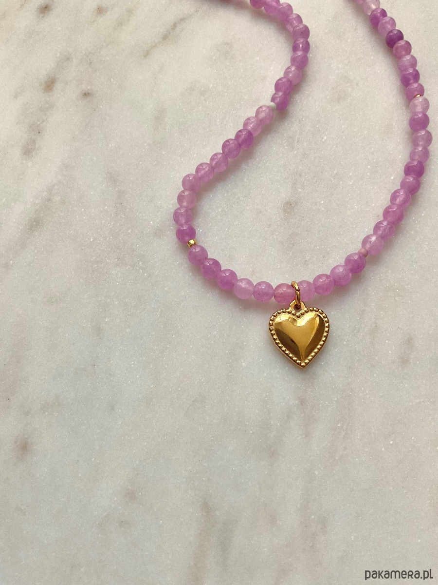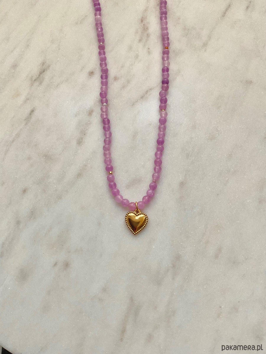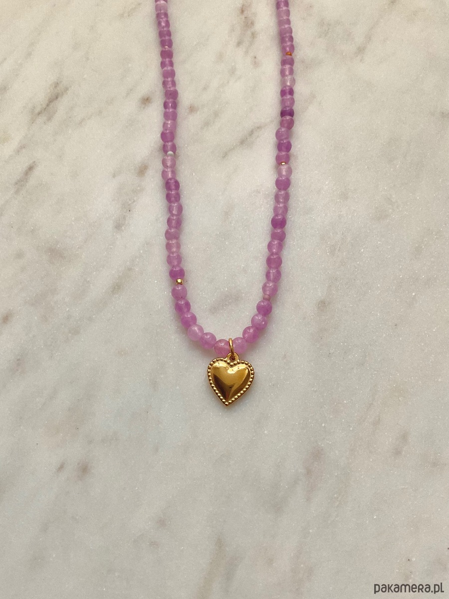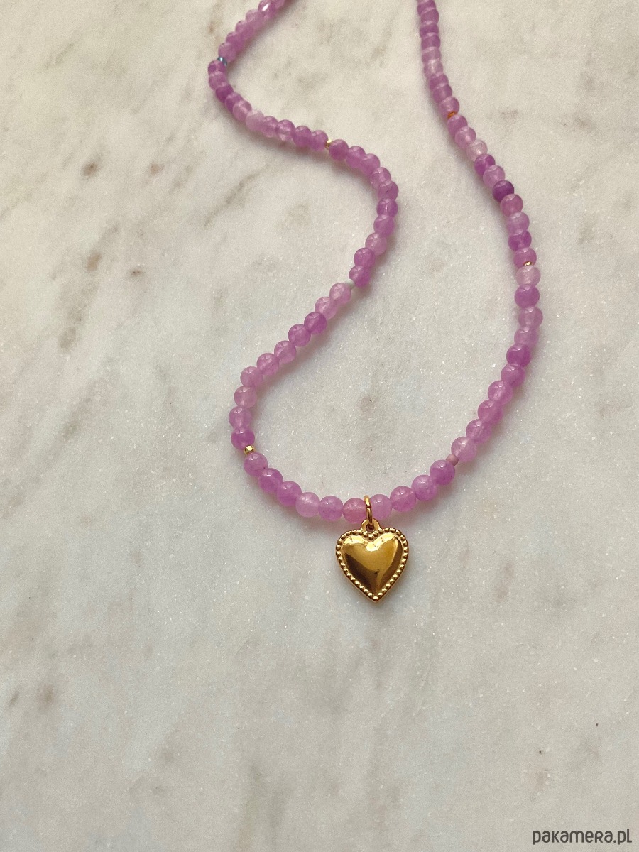Choker wykonany z lawendowych kamieni naturalnych jadeit o wielkości 4mm, jest przeplatany drobnymi koralikami.