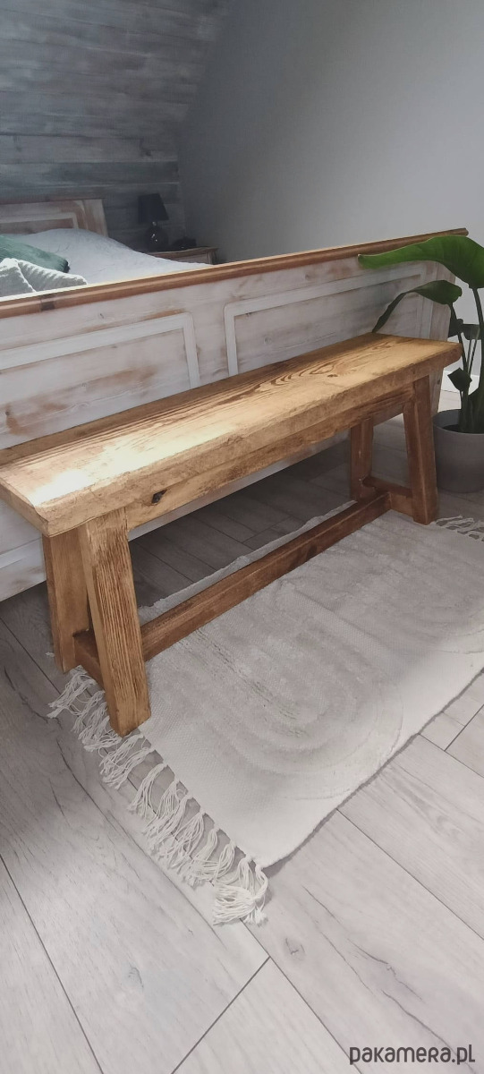 Ławka drewniana rustykalna z litego drewna styl farmhouse do przedpokoju i domu