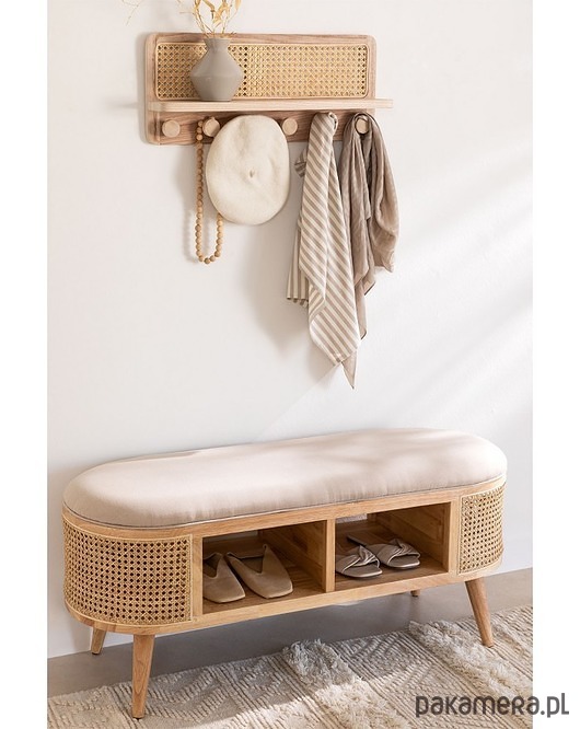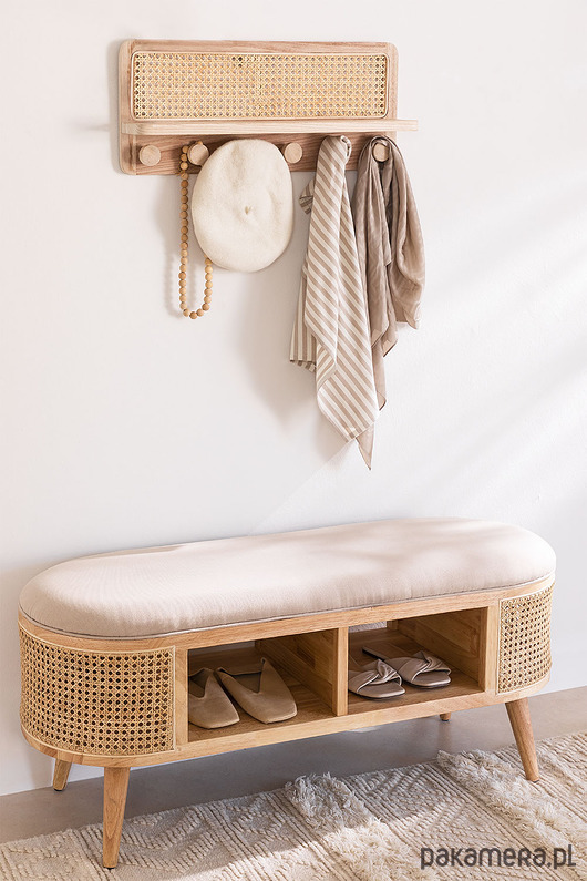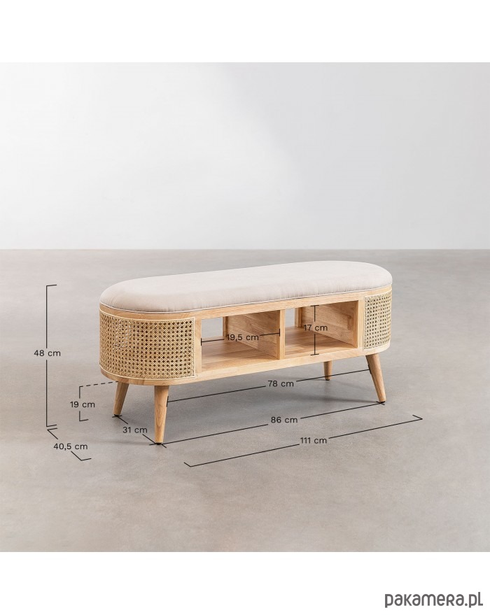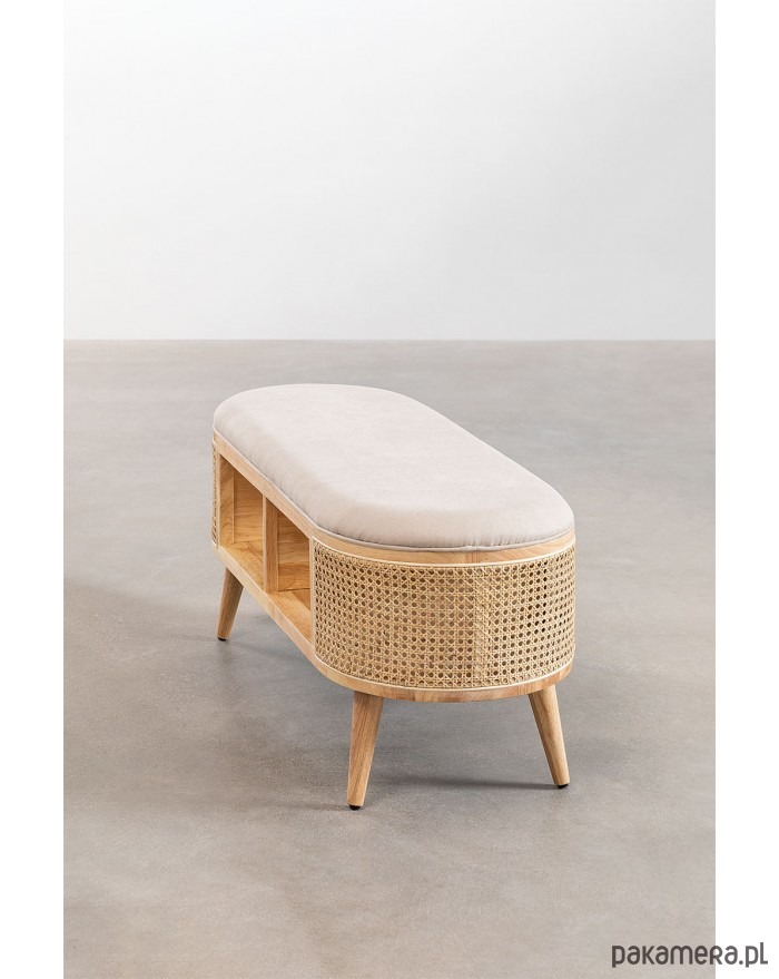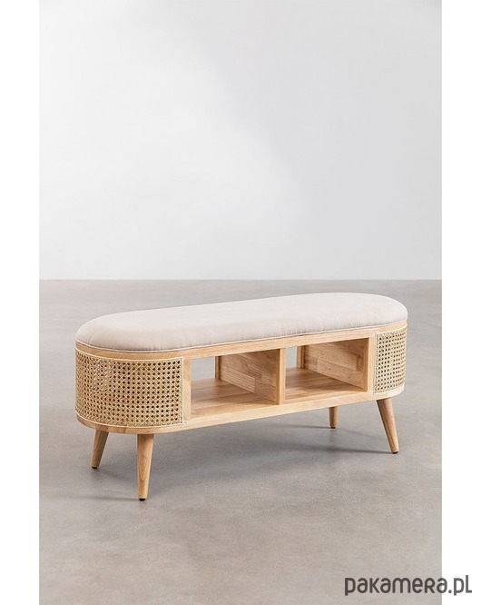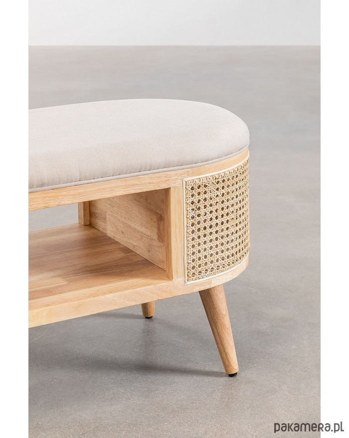 Ikona stylu vintage! Zgrabna ławka wykonana z drewna brzozowego. Tapicerowana. Ozdobiona plecionką wiedeńską, nadająca meblowi elegancji. Posiada dwie półki. Solidna. Idealny do salonu, przedpokoju czy sypialni a nawet jako dekoracja biur czy hoteli.
