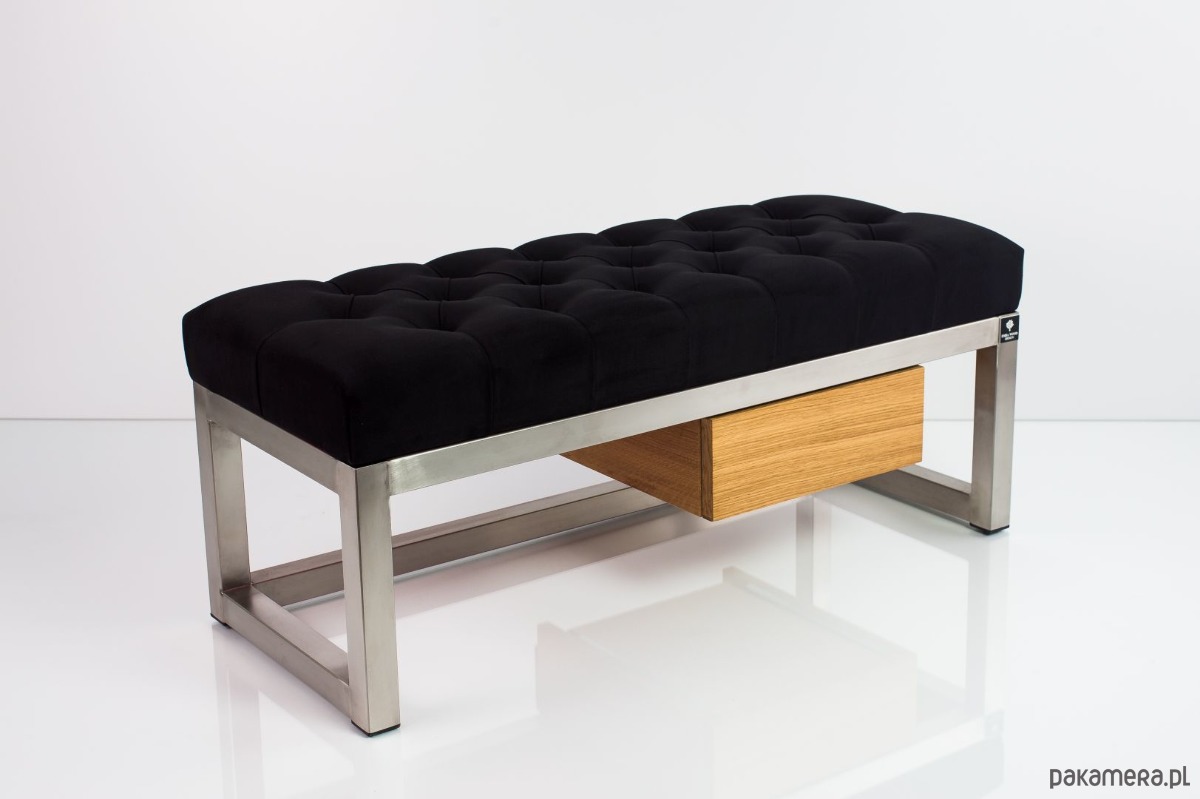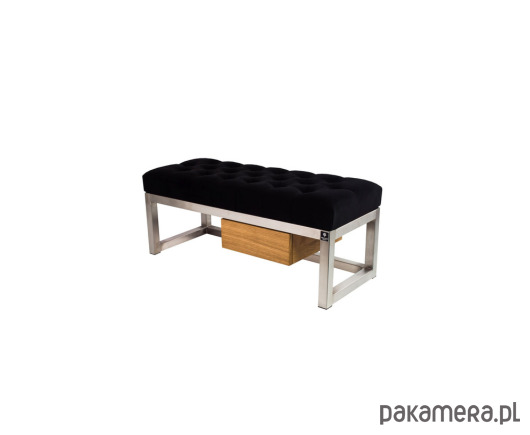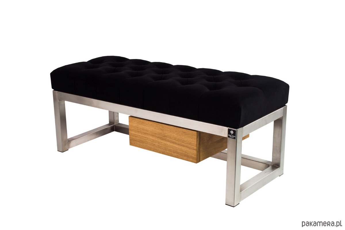 ŁAWKA METALOWA SIEDZISKO PIKOWANYM Welur Casablanca 2316 Czarna Guziki Tapicerowany / Stelaż Stal Nierdzewna Szczotkowana / model LPMS-7