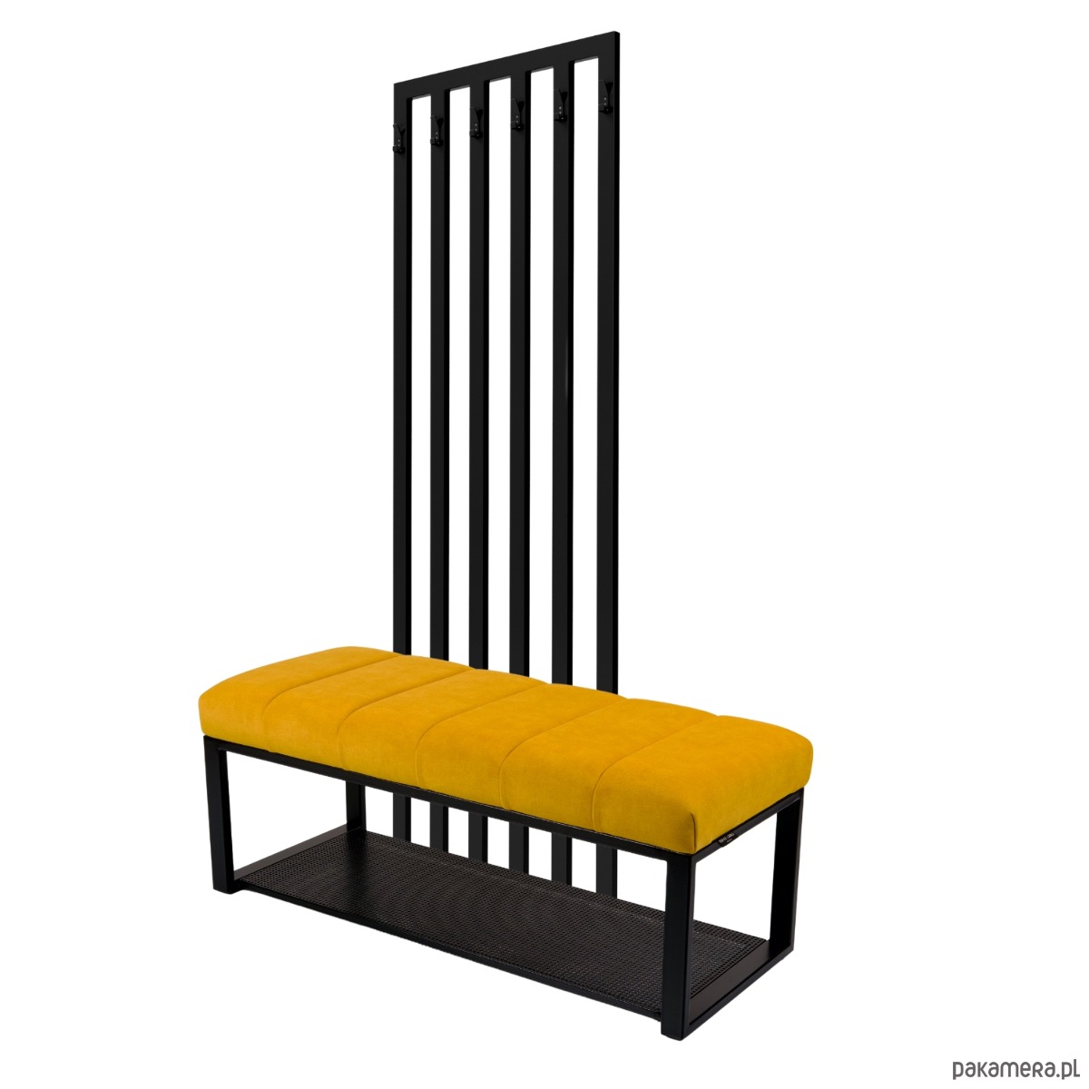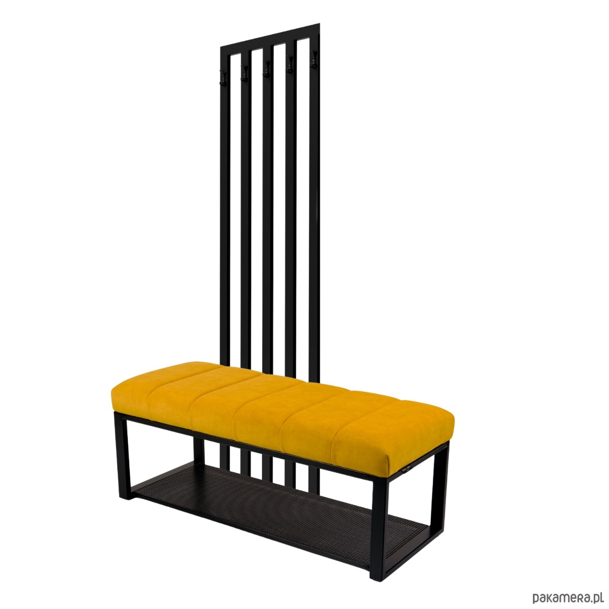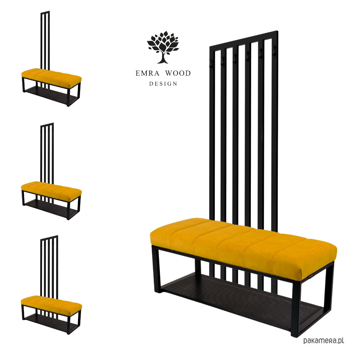 Ławka Tapicerowana z Wieszakiem Stal Czarna Malowana Proszkowo LMW-15 / Producent Emra Wood Design