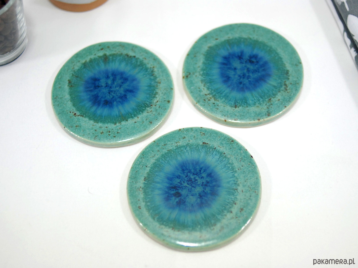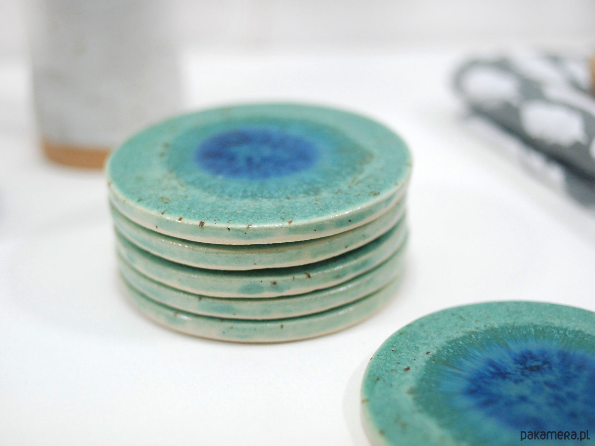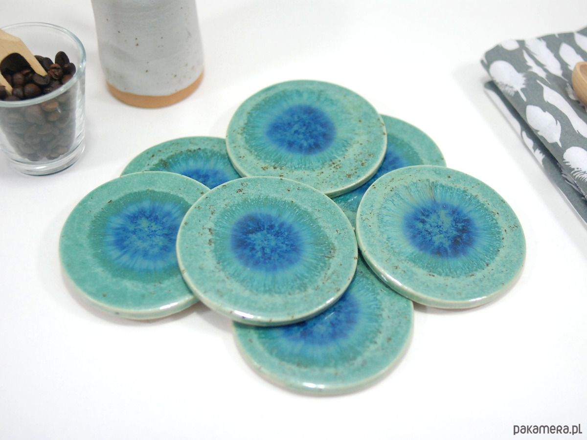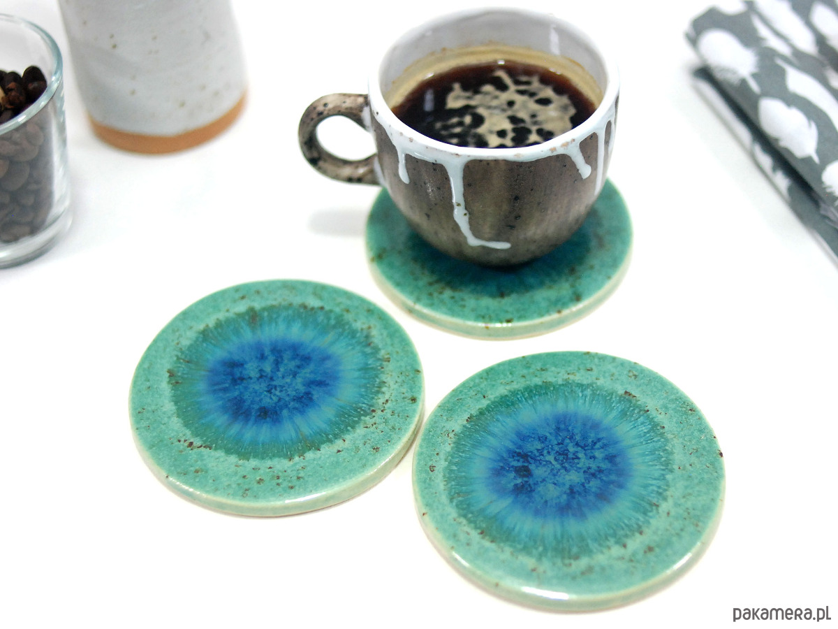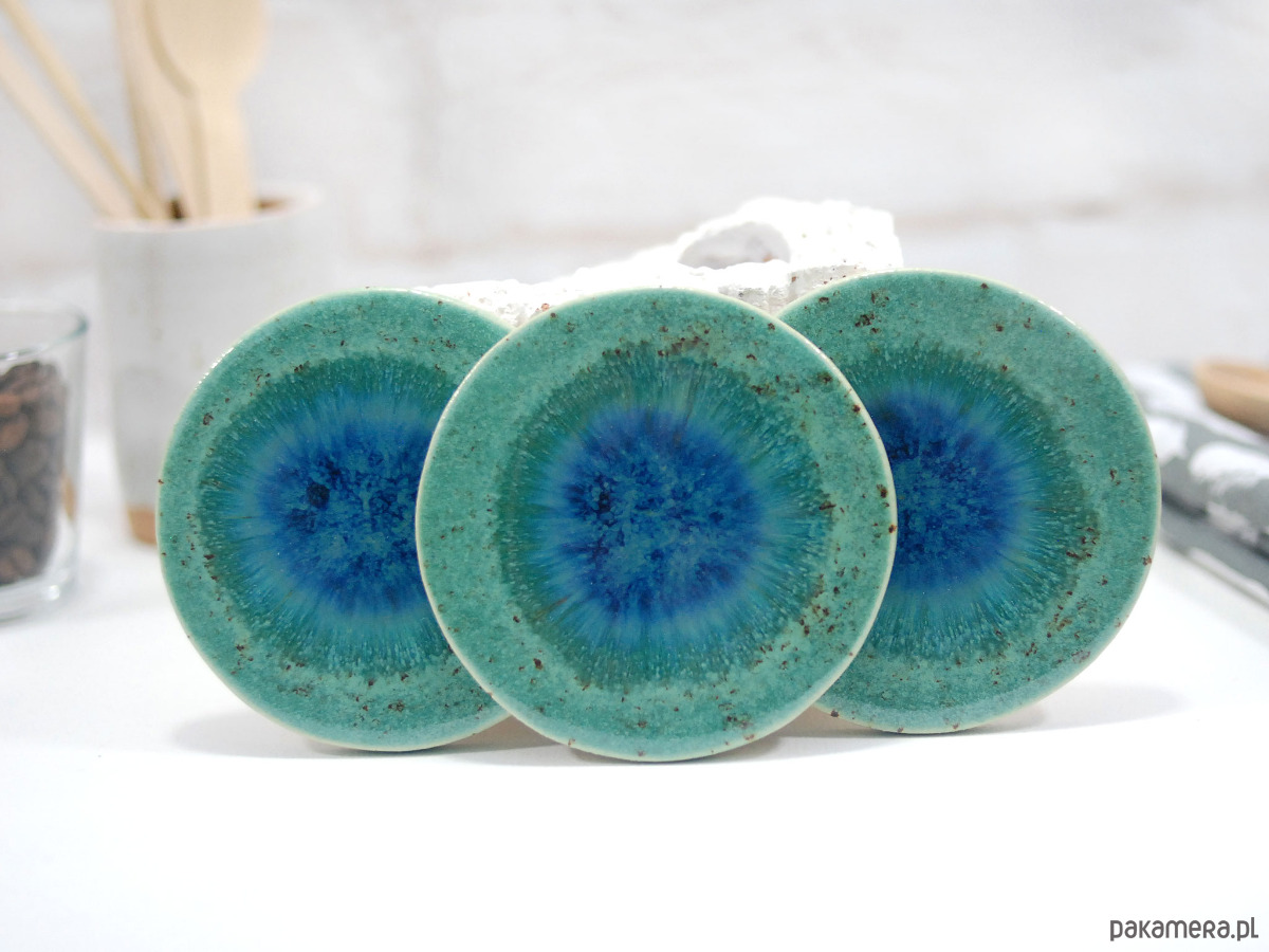 Ręcznie wykonane podkładki ceramiczne w pięknych odcieniach turkusu. Stylowo zabezpieczą Twój stół przed plamami, dodając wyjątkowego charakteru każdej przerwie na kawę czy herbatę.