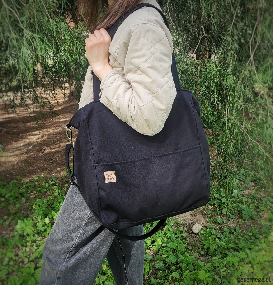 Lazy bag Pocket torba czarna bawełniana vegan