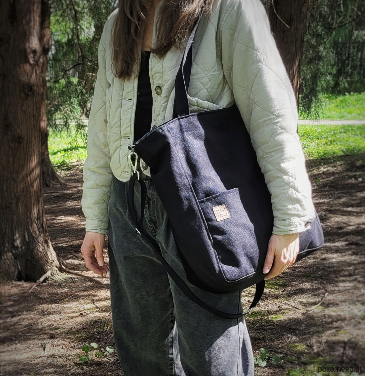 Wnętrze zostało wykończone bawełnianą czarną podszewką. Torba miękko układa się na ramieniu, dodatkowo posiada regulowany pasek, jeśli potrzebujesz poczuć się swobodnie.