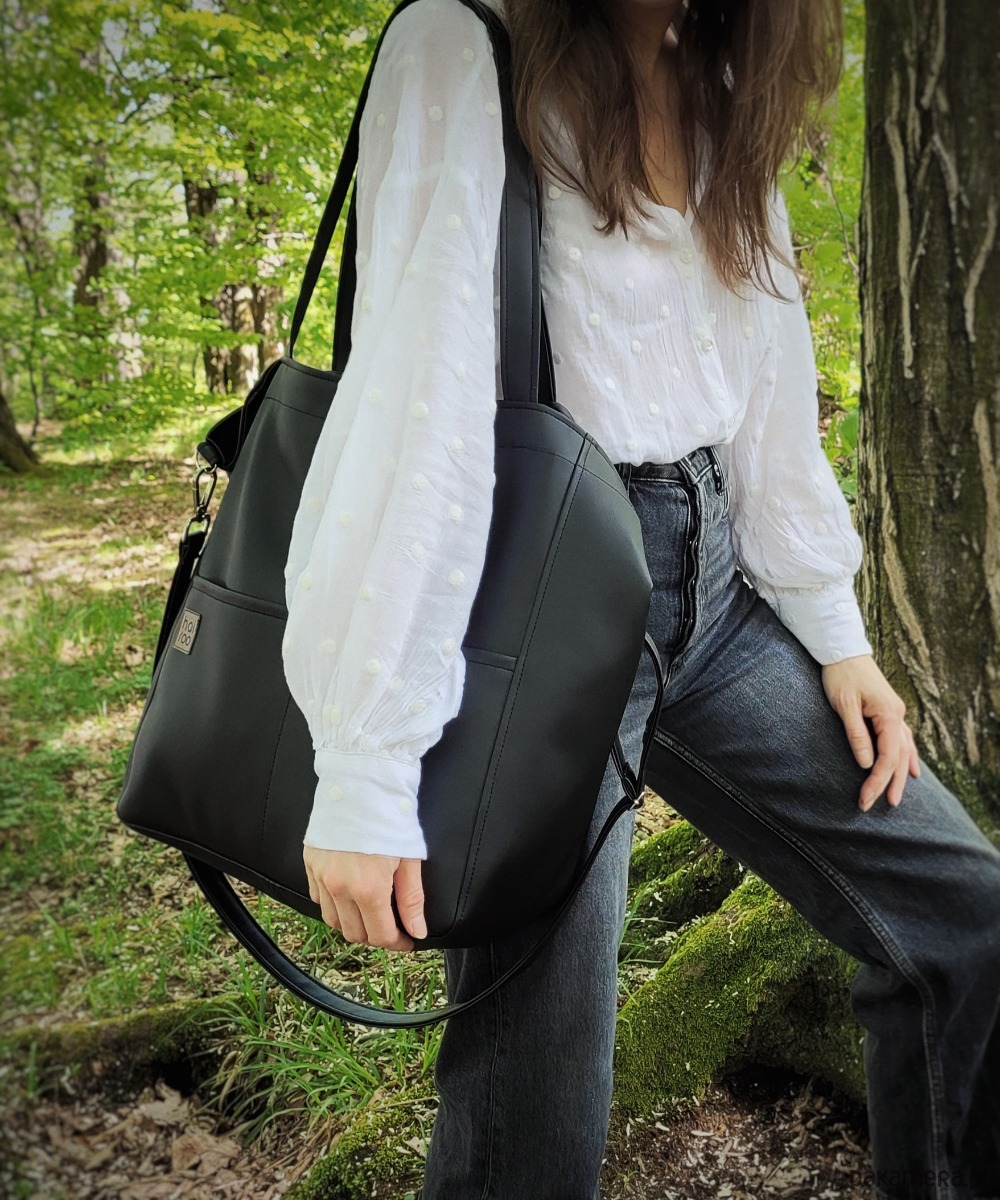 Lazy Bag Pocket to miejska torba oversize z dwoma kieszeniami z przodu. Prosty design i praktyczny charakter sprawia, że będzie twoją ulubioną torbą od rana do wieczora. To twoja wierna towarzyszka większych i mniejszych podróży. Została uszyta z miękkiej ekoskóry w kolorze czarnym. Wnętrze zostało wykończone bawełnianą czarną podszewką. Torba miękko układa się na ramieniu, dodatkowo posiada regulowany pasek, jeśli potrzebujesz poczuć się swobodnie.