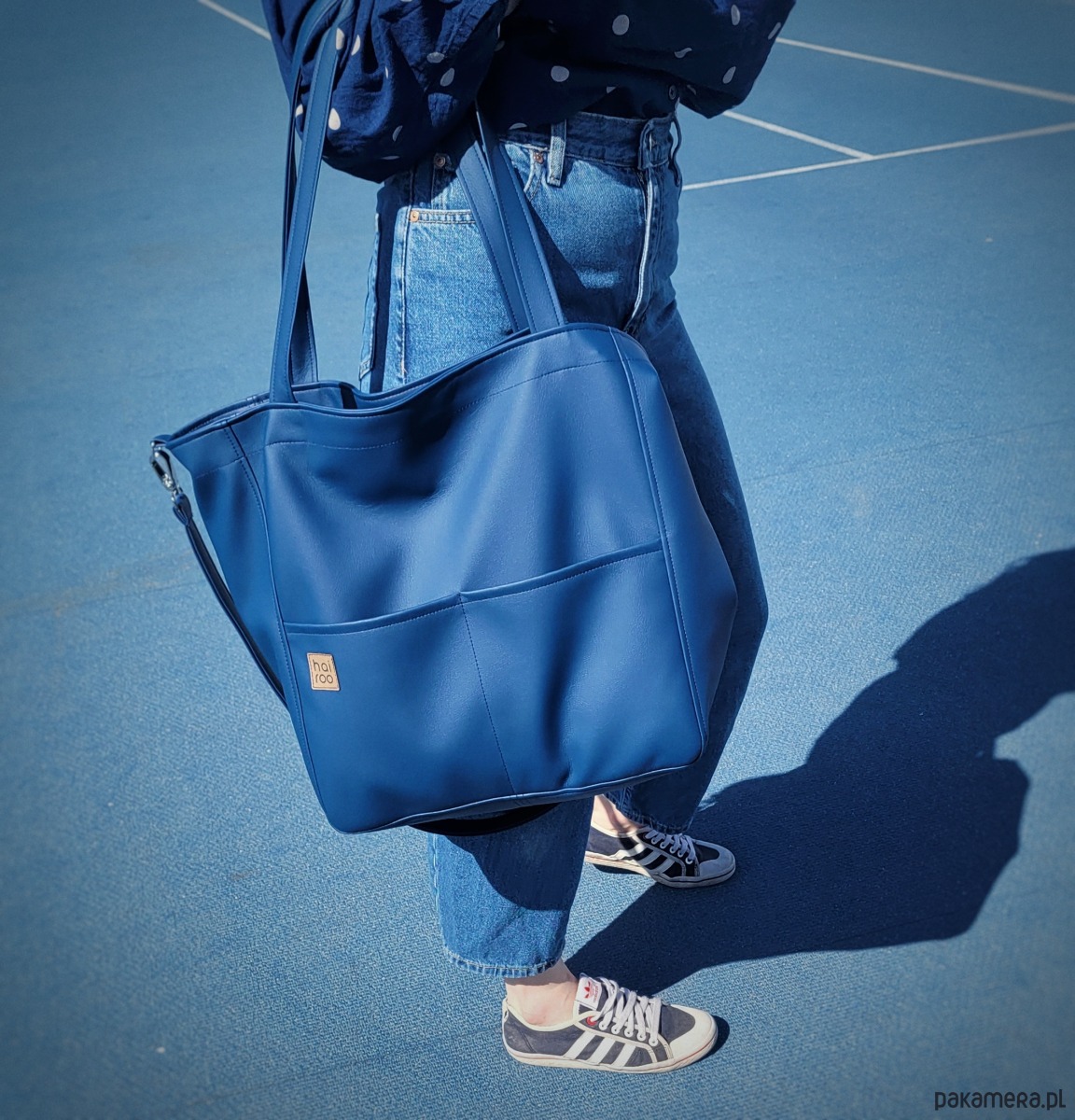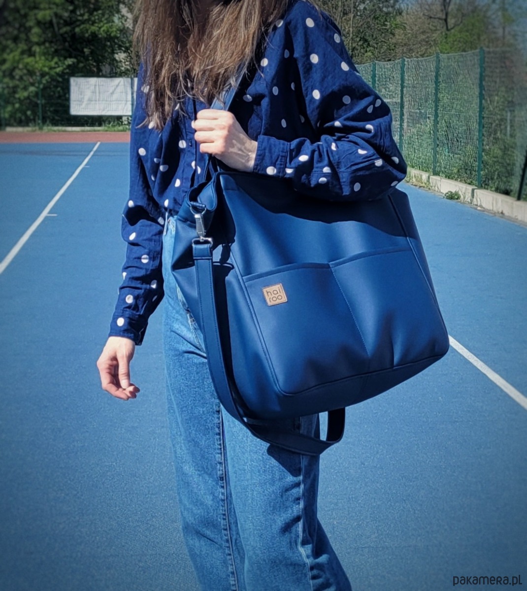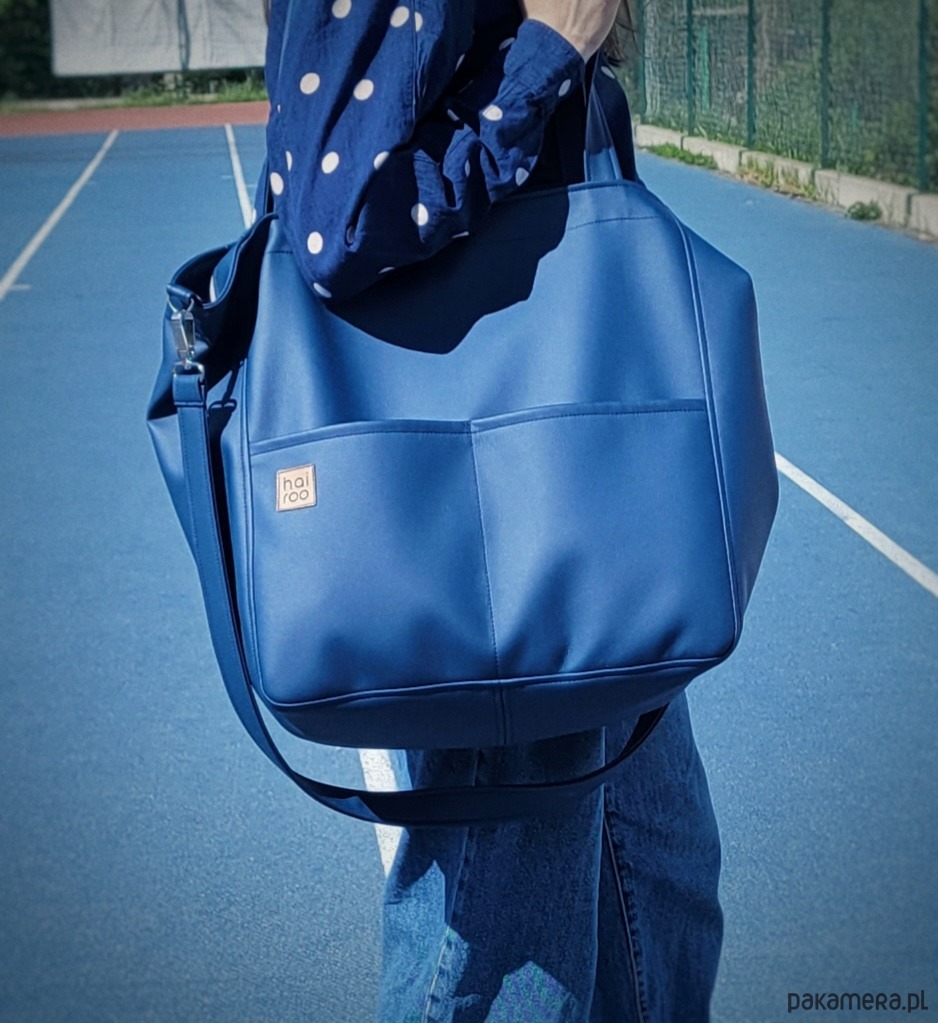 Lazy Bag Pocket to miejska torba oversize z dwoma kieszeniami z przodu. Prosty design i praktyczny charakter sprawia, że będzie twoją ulubioną torbą od rana do wieczora. To twoja wierna towarzyszka większych i mniejszych podróży. Została uszyta z miękkiej ekoskóry w kolorze granatowym. Wnętrze zostało wykończone bawełnianą szarą podszewką. Torba miękko układa się na ramieniu, dodatkowo posiada regulowany pasek, jeśli potrzebujesz poczuć się swobodnie.
