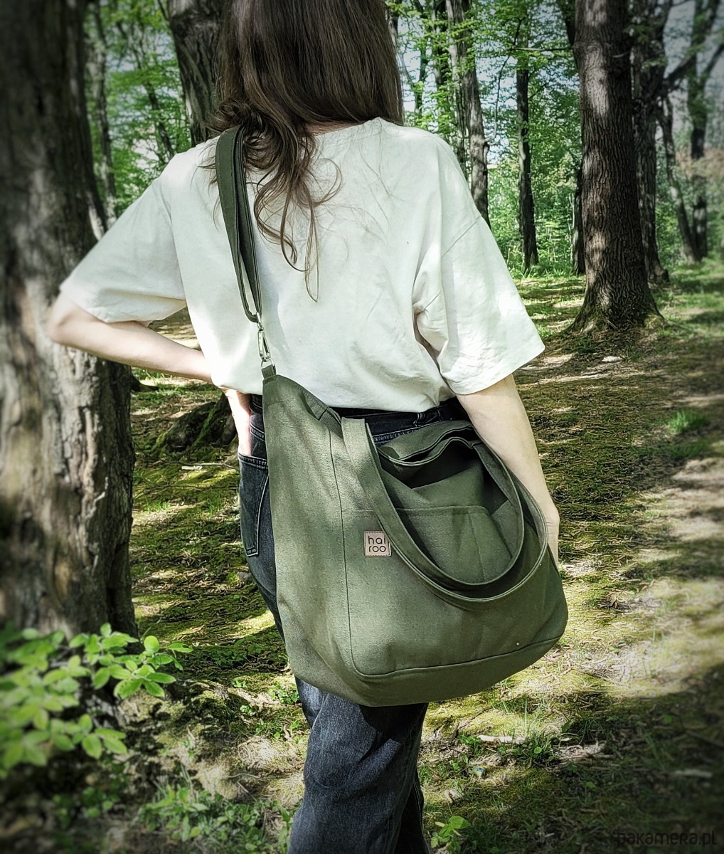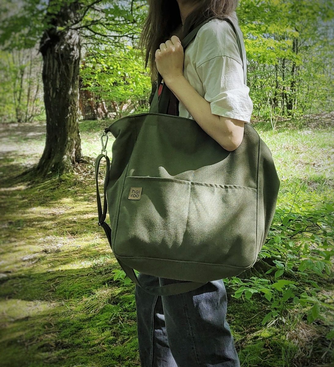 Lazy Bag Pocket to miejska torba oversize z dwoma kieszeniami z przodu. Prosty design i praktyczny charakter sprawia, że będzie twoją ulubioną torbą od rana do wieczora. To twoja wierna towarzyszka większych i mniejszych podróży. Została uszyta z grubej bawełny typu canvas w kolorze zielonym.