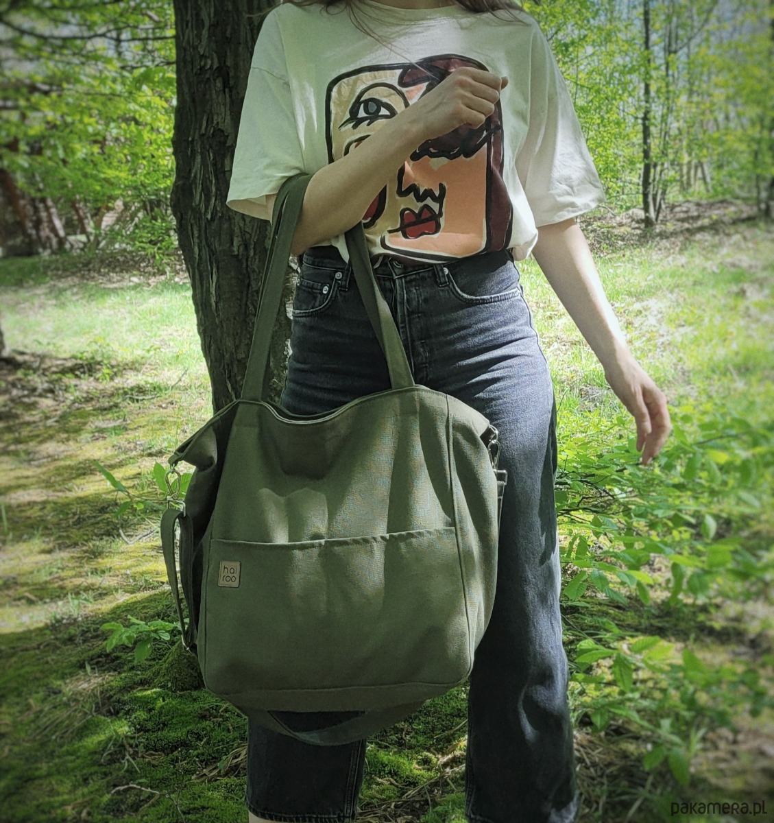 Lazy Bag Pocket to miejska torba oversize z dwoma kieszeniami z przodu. Prosty design i praktyczny charakter sprawia, że będzie twoją ulubioną torbą od rana do wieczora. To twoja wierna towarzyszka większych i mniejszych podróży. Została uszyta z grubej bawełny typu canvas w kolorze zielonym.