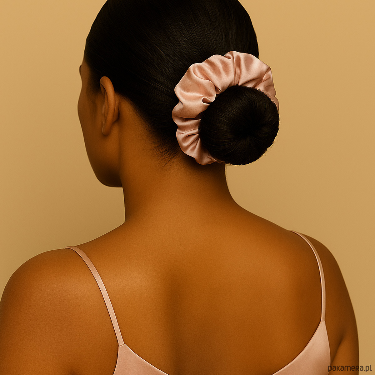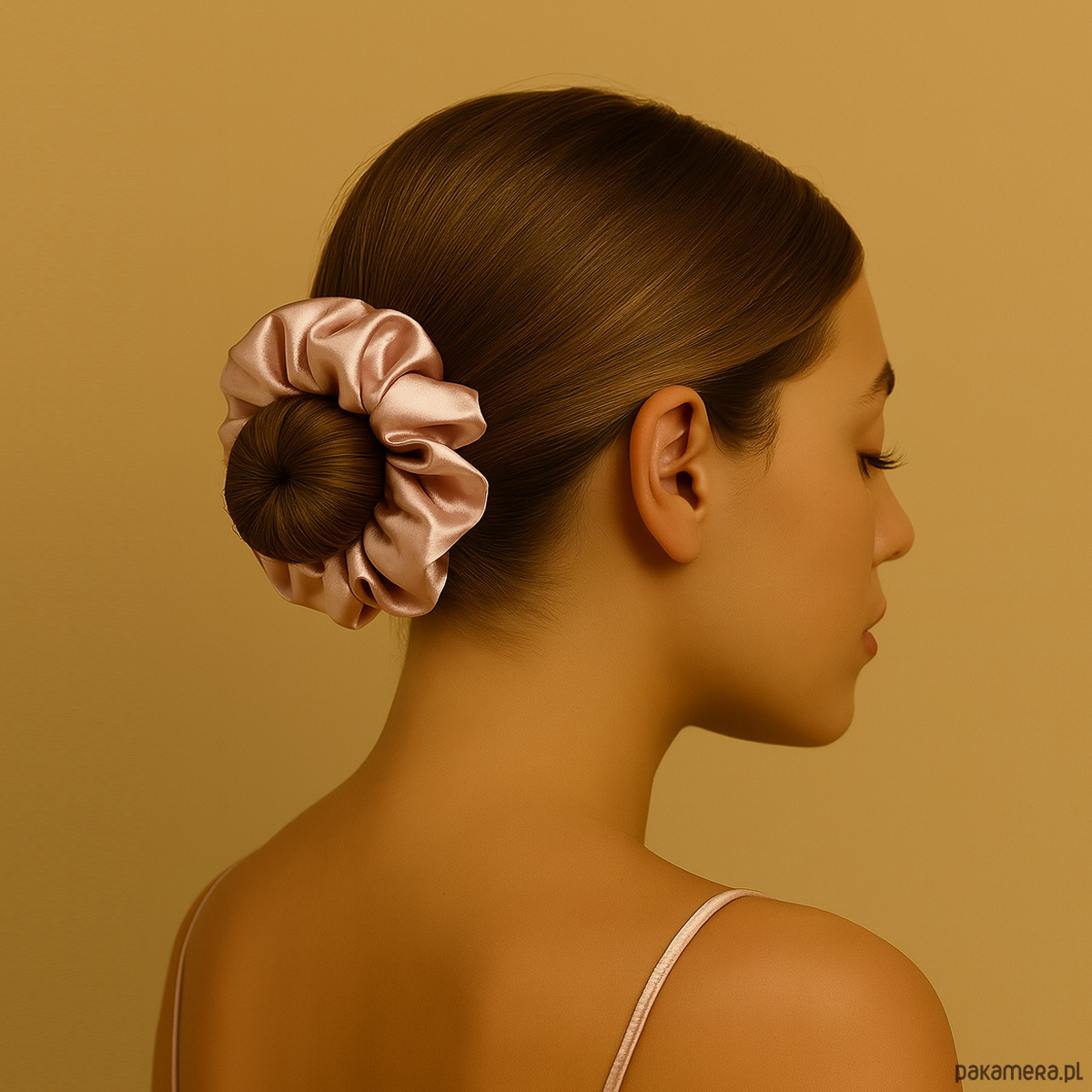 Jedwabna scrunchie prezentuje się na włosach niezwykle szykownie, niezależnie od okazji – idealnie podkreśli zarówno casualowy, codzienny look, jak i wieczorową stylizację.