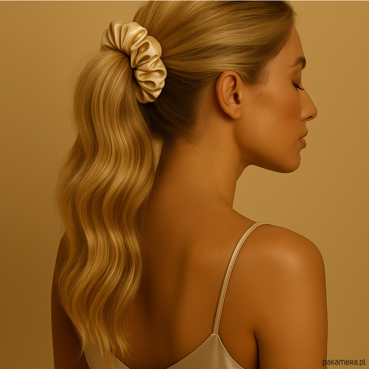 Jedwabna scrunchie prezentuje się na włosach niezwykle szykownie, niezależnie od okazji – idealnie podkreśli zarówno casualowy, codzienny look, jak i wieczorową stylizację.