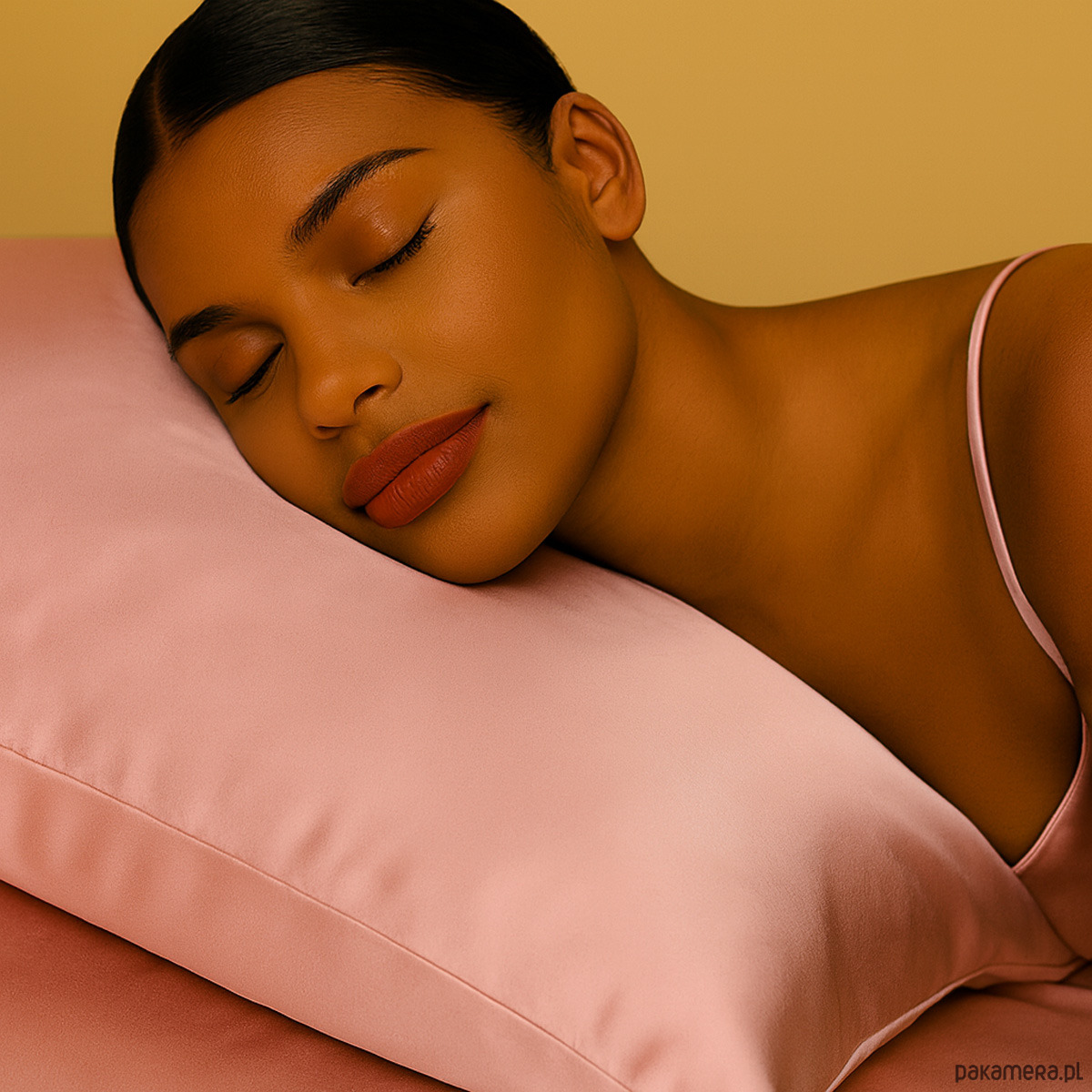 Uszyta z naturalnego jedwabiu o luksusowej gramaturze 22 momme, zachwyca doskonałą gęstością włókien, jedwabistą gładkością i szlachetnym połyskiem. To najwyższa jakość, która otula skórę kojącą miękkością i troszczy się o włosy — ograniczając tarcie, puszenie i utratę nawilżenia.