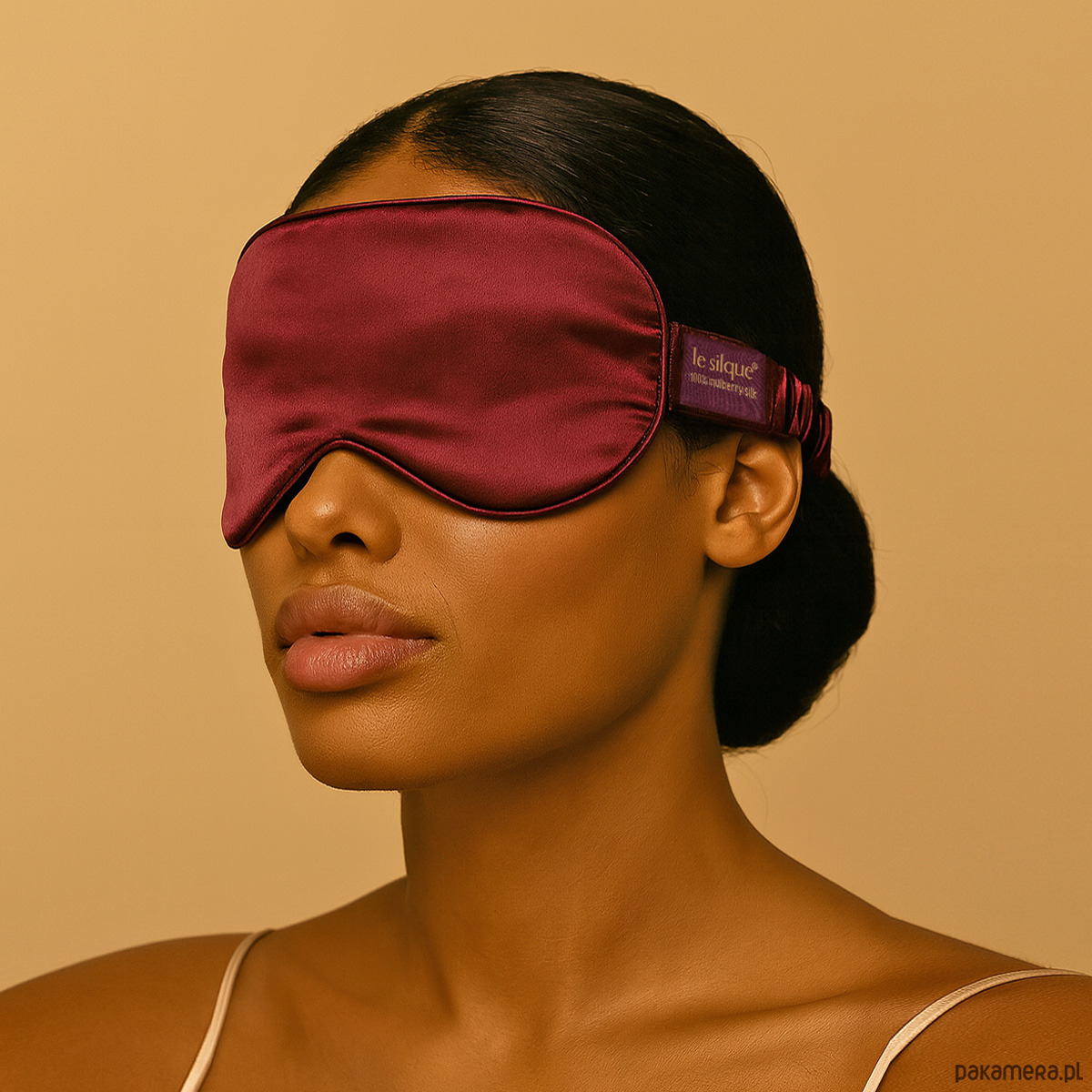 LE SILQUE Opaska na oczy z jedwabiu - BURGUNDY