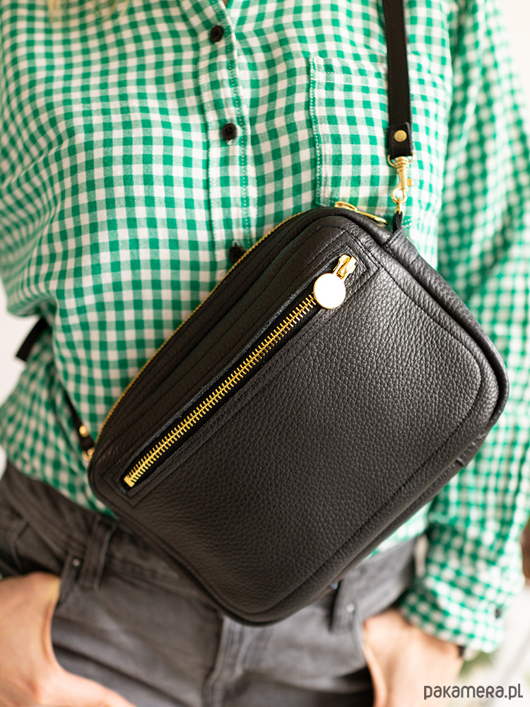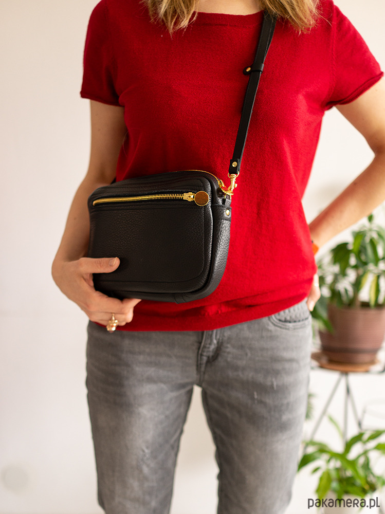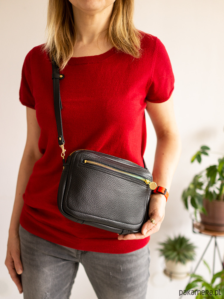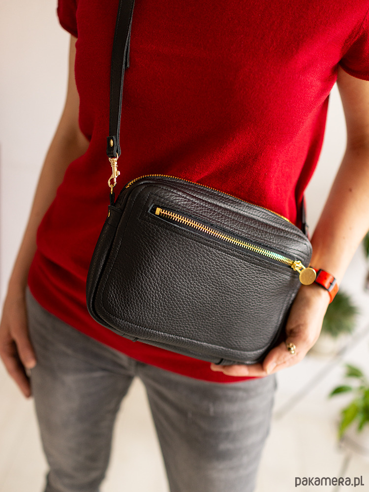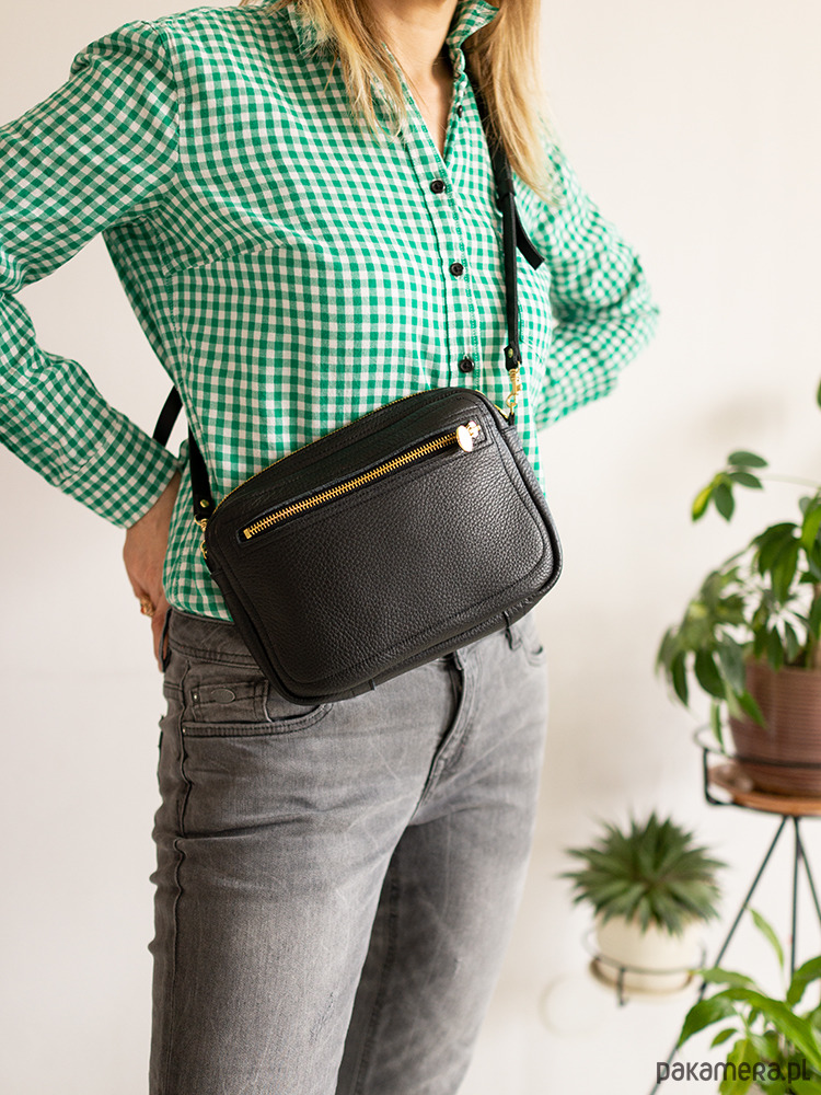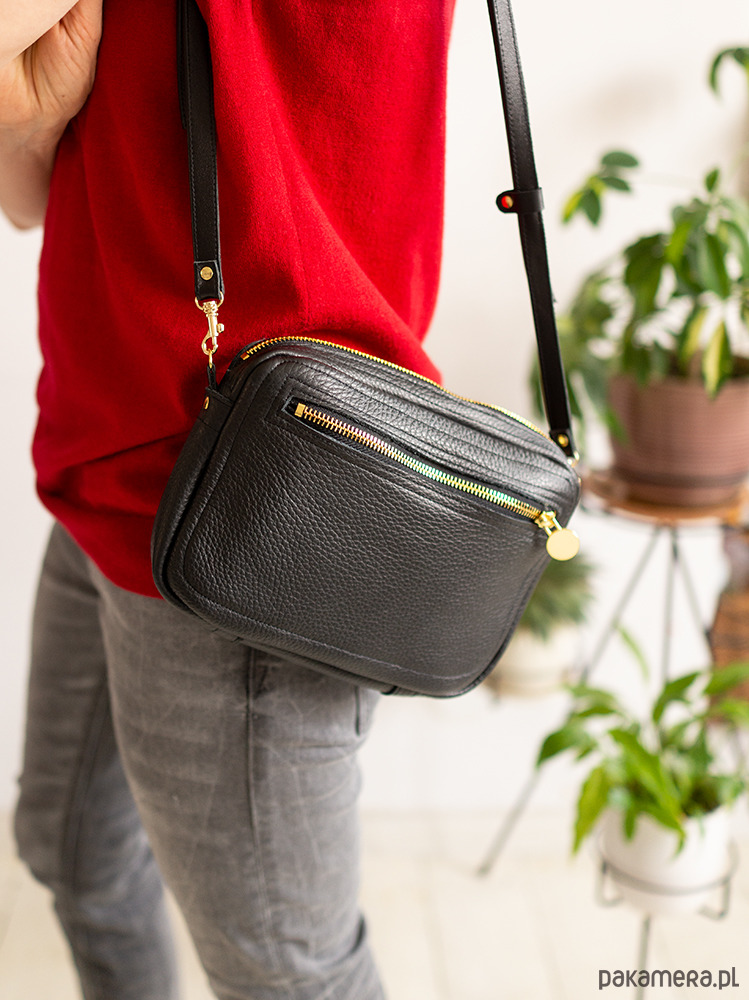Zgrabna i praktyczna torebka na ramię. Wykonana z wysokogatunkowej naturalnej skóry w kolorze czarnym. Bez podszewki, środek to lewa strona skóry, zamszowa. Zamykana na zamek, z kieszenią z boku, dodatki w kolorze złotym lub srebrnym do wyboru. Torebka sprawdzi się znakomicie na codzień.