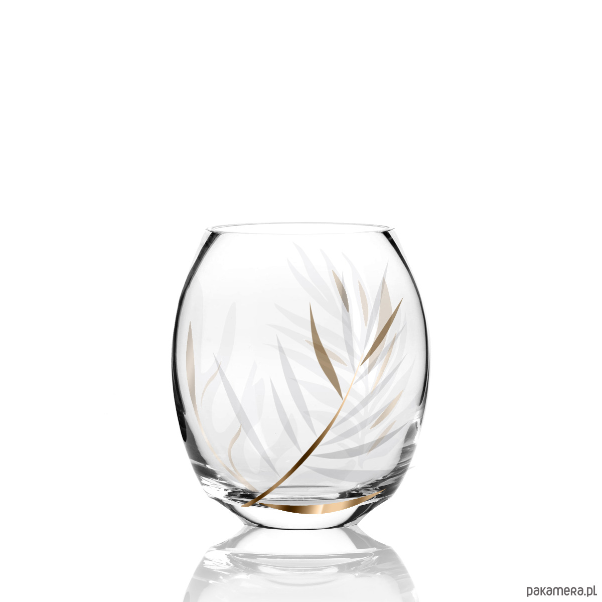 wazon mały / świecznik o delikatnym satynowo-złotym wzorze, zdobienie 24-karatowym złotem