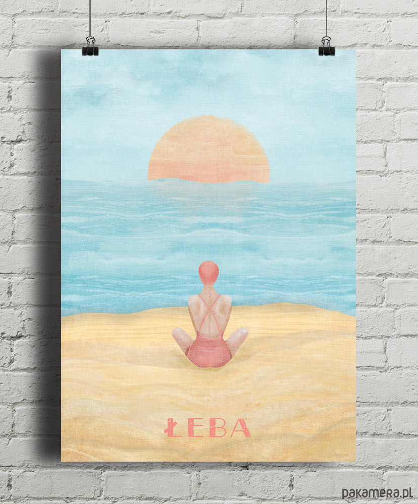 Plakat w stylu retro przedstawiający piaszczyste wydmy Łeby. Piękna dekoracja na każdą ścianę przywołująca wspomnienie najbardziej odprężających letnich chwil. Idealny dla wszystkich doceniających piękno polskiego wybrzeża.