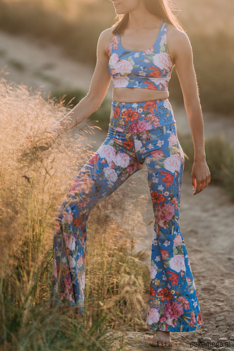 Wyjątkowe legginsy dzwony, to nasza propozycja dla aktywnych kobiet z artystyczną duszą, które chcą się wyróżnić i podkreślić swoją delikatną naturę. Uszyte z wysokiej jakości dzianiny, która pozwala skórze oddychać i nie powoduje uczucia ciężkości, czy przegrzewania. Wyjątkowo kobiecy strój sportowy będący prawdziwym sprzymierzeńcem w akceptacji i afirmacji własnego ciała, ponieważ podkreśla kobiece piękno dzięki niepowtarzalnemu krojowi.