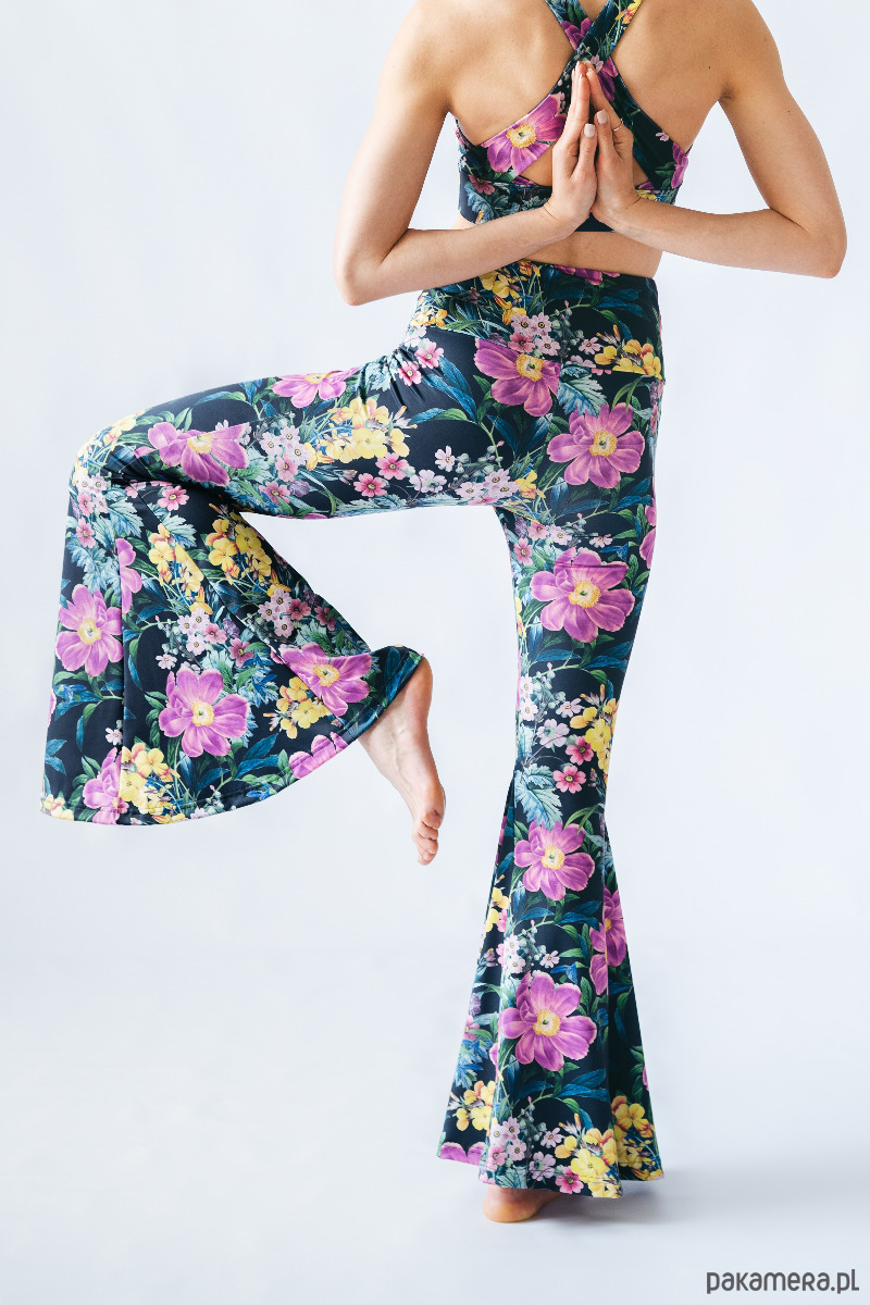 Legginsy dzwony Yogi Bells - Purple Peonies