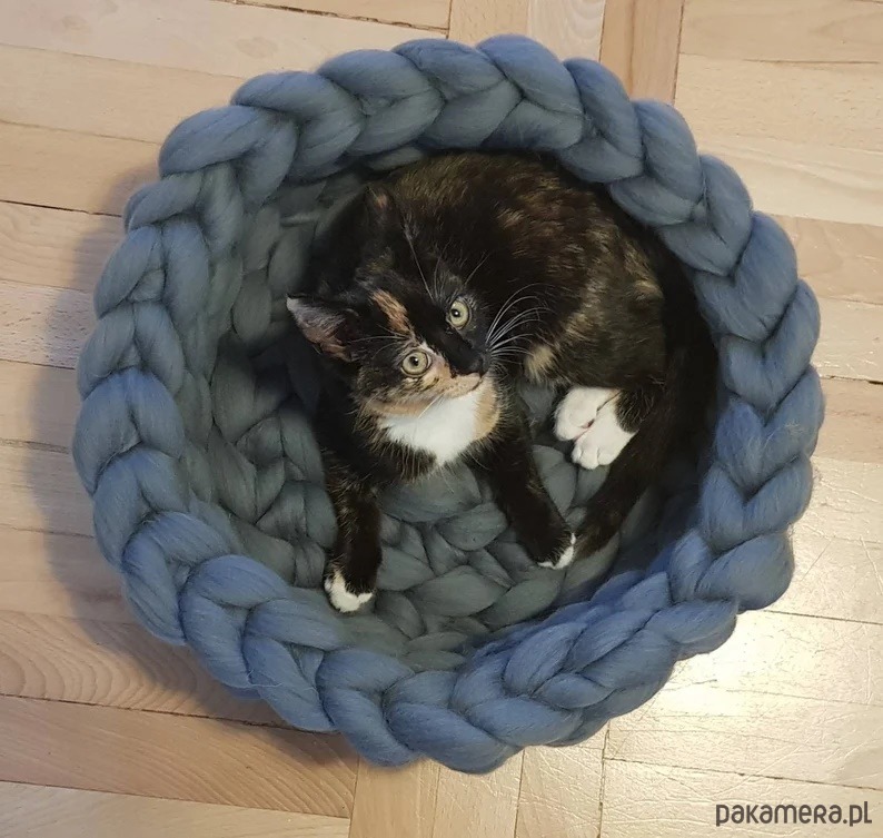 Super miękkie legowisko dla kota wykonane ręcznie z naturalnej owczej wełny 100%.