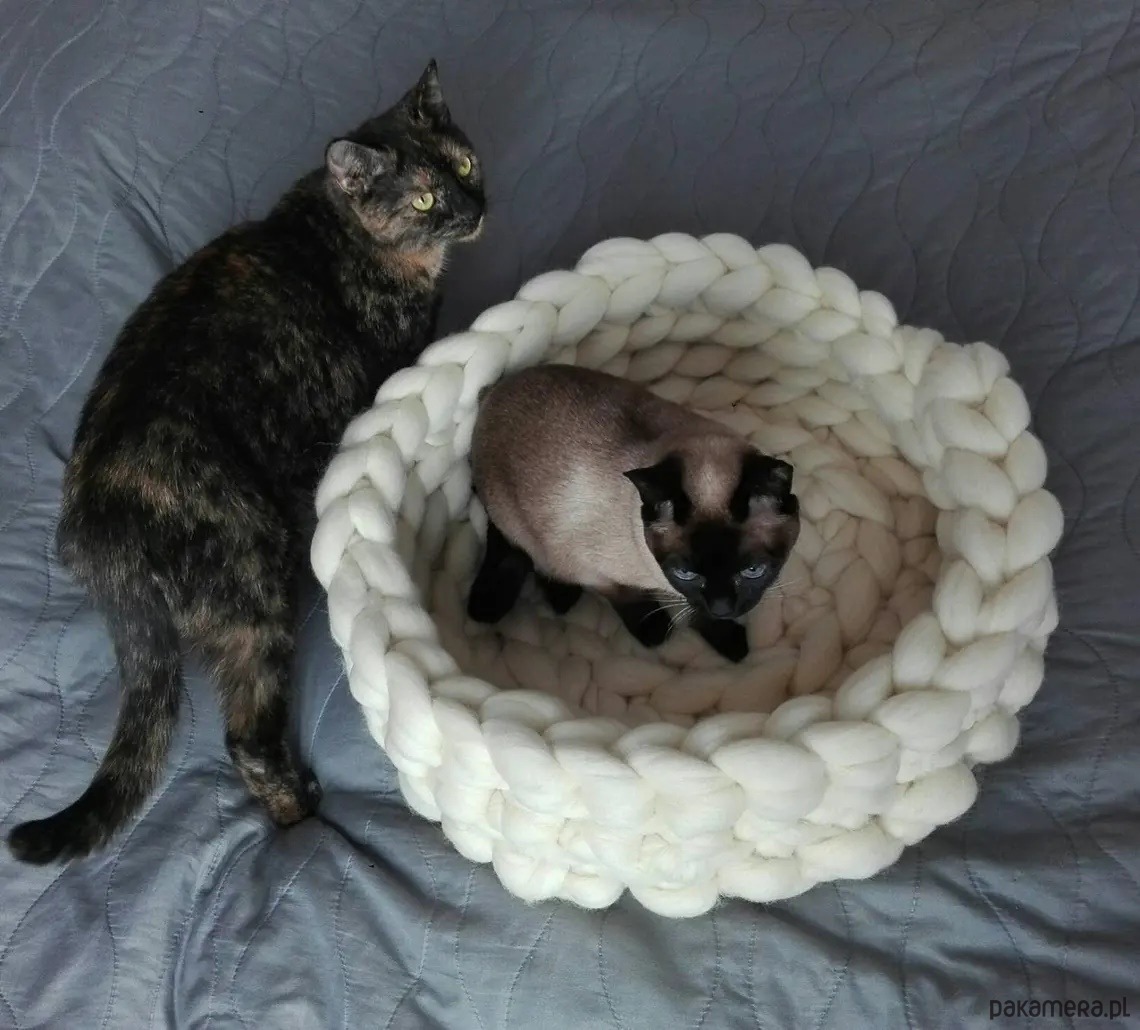 Super miękkie legowisko dla kota wykonane ręcznie z naturalnej owczej wełny 100%.