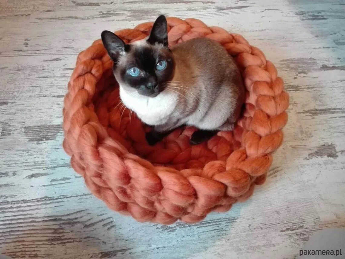 Super miękkie legowisko dla kota wykonane ręcznie z naturalnej owczej wełny 100%.