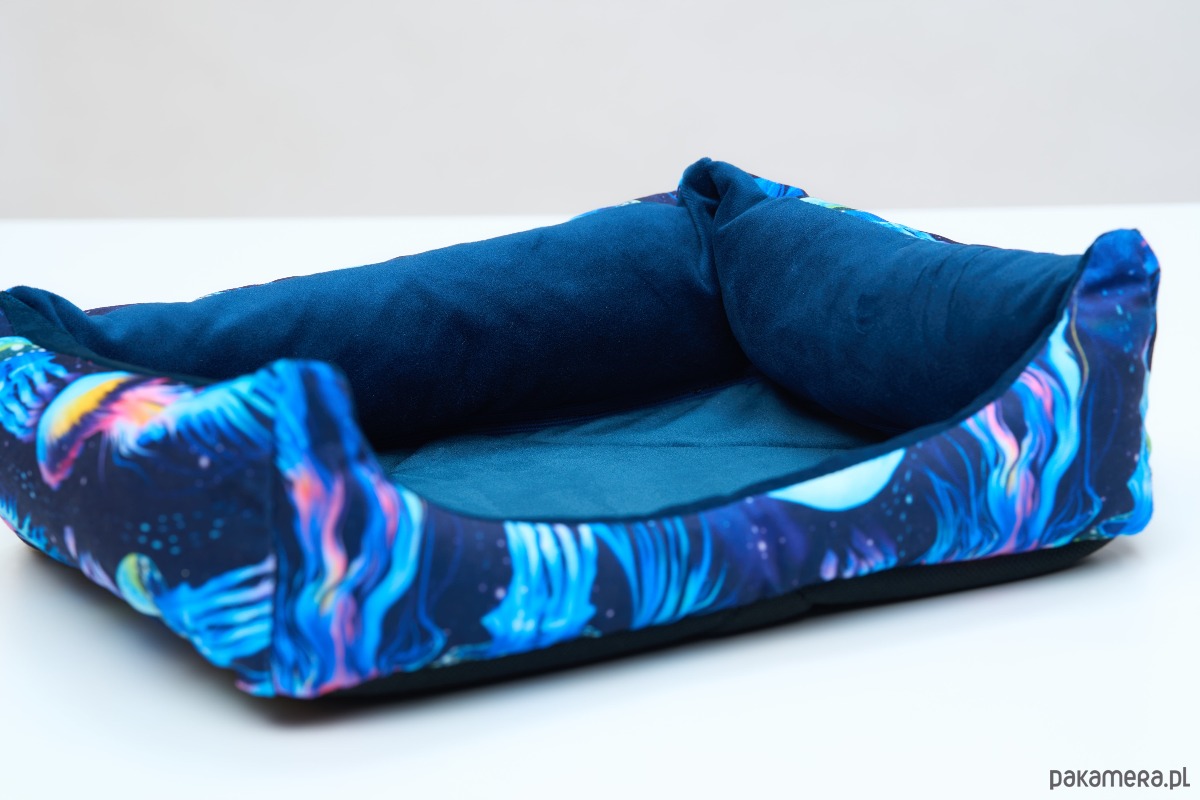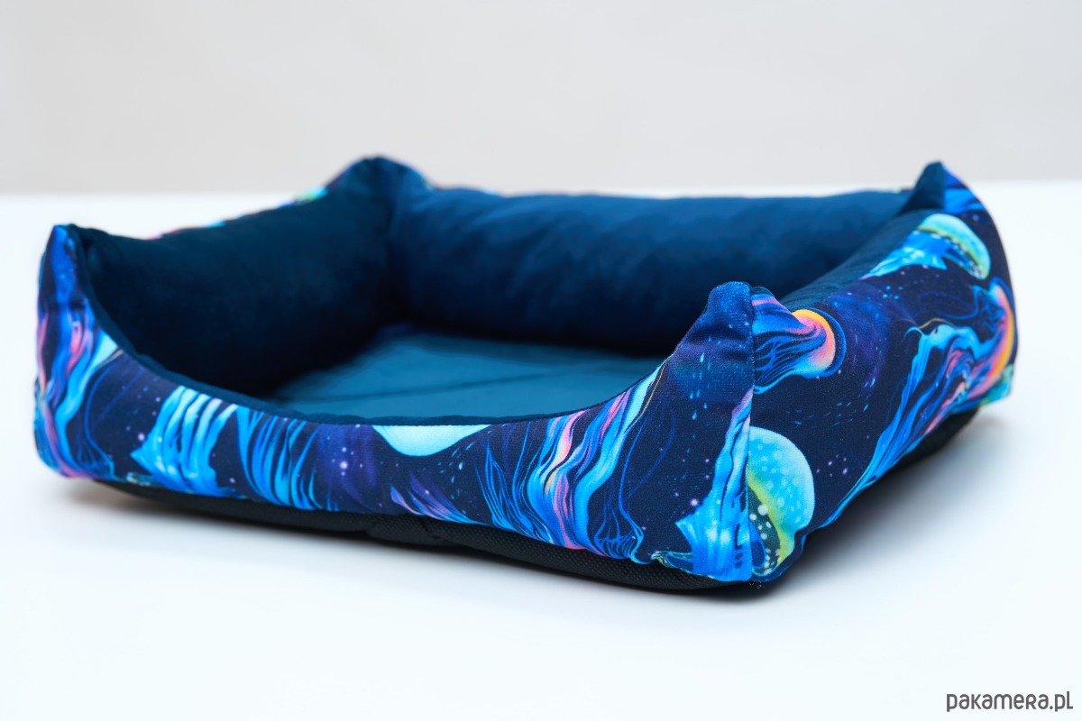 Legowisko dla małych zwierząt to znacznie mniejszy odpowiednik naszego legowiska dla psów i kotów z małymi wyjątkami. Naszym celem, było stworzenie niskiej, ale komfortowej kanapy dla zwierząt, które mają problem z poruszaniem się lub nie lubią wskakiwać na znacznie wyższe legowiska i poduchy. Mamy tu niski przód, przez który wchodzenie jest bardzo proste i nie wymaga skoków. W środek wszyliśmy gąbkę tapicerską, by nie musieć dokładać poduszek, które automatycznie podnoszą wysokość produktu. Stabilne ścianki, wypchane owatą tapicerską, które trzymają fason legowiska a jednocześnie są idealne do oparcia główki.