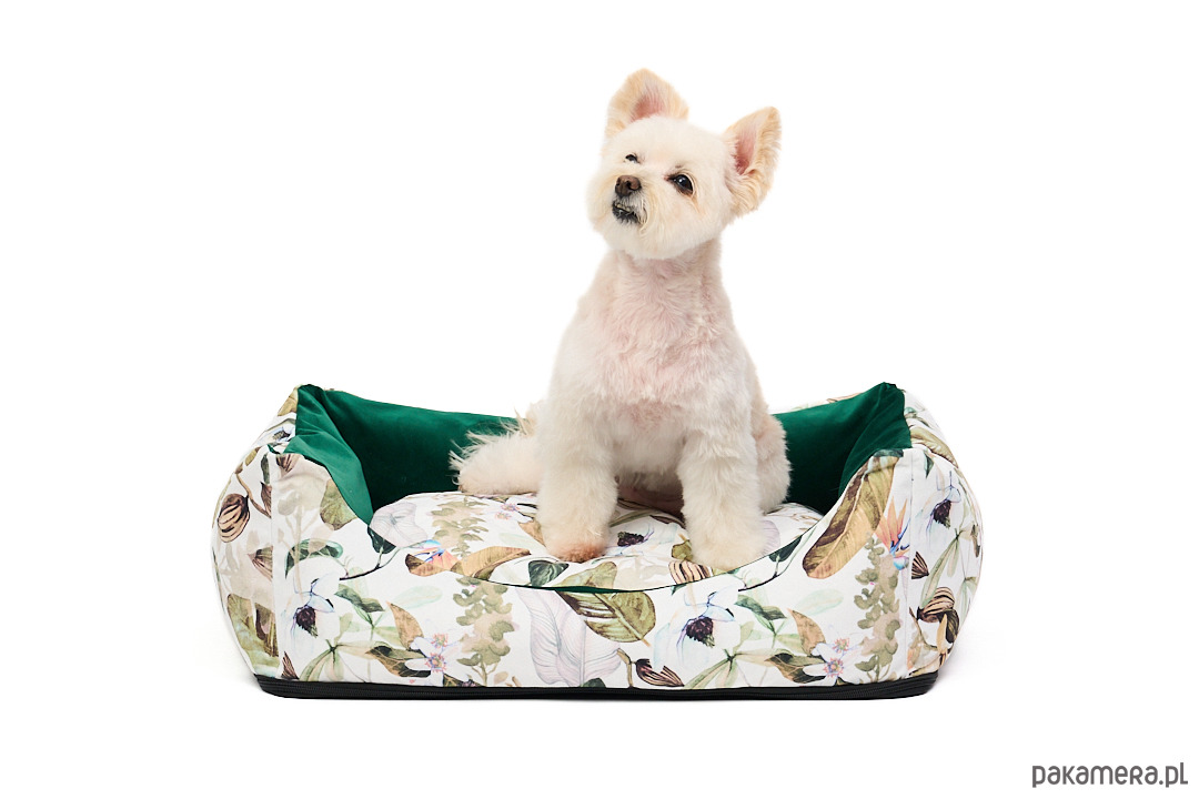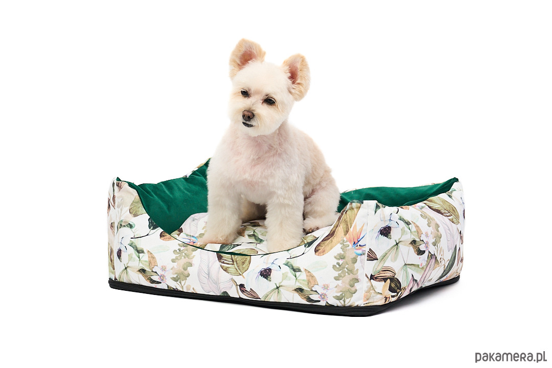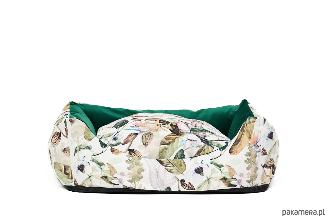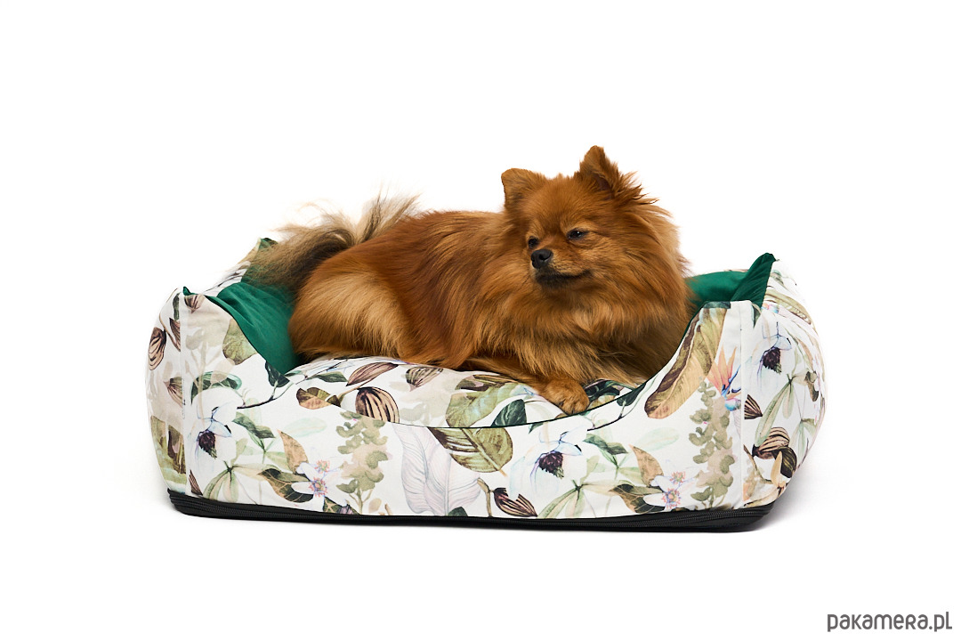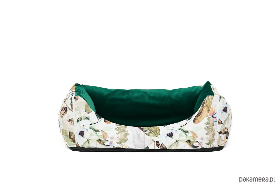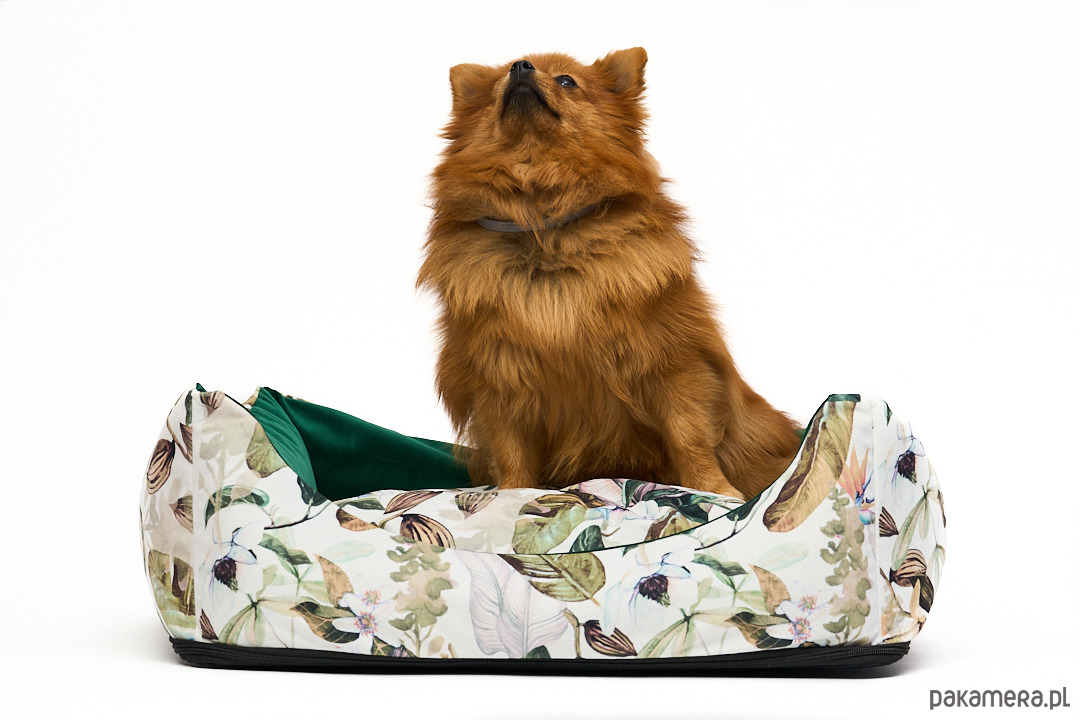 Uszyte z wyjątkowego weluru tapicerskiego - odporne na rozdarcia i ścieranie. Łagodne wejście z przodu, mocne ścianki, wyjmowana poduszka oraz antypoślizgowa podstawa.