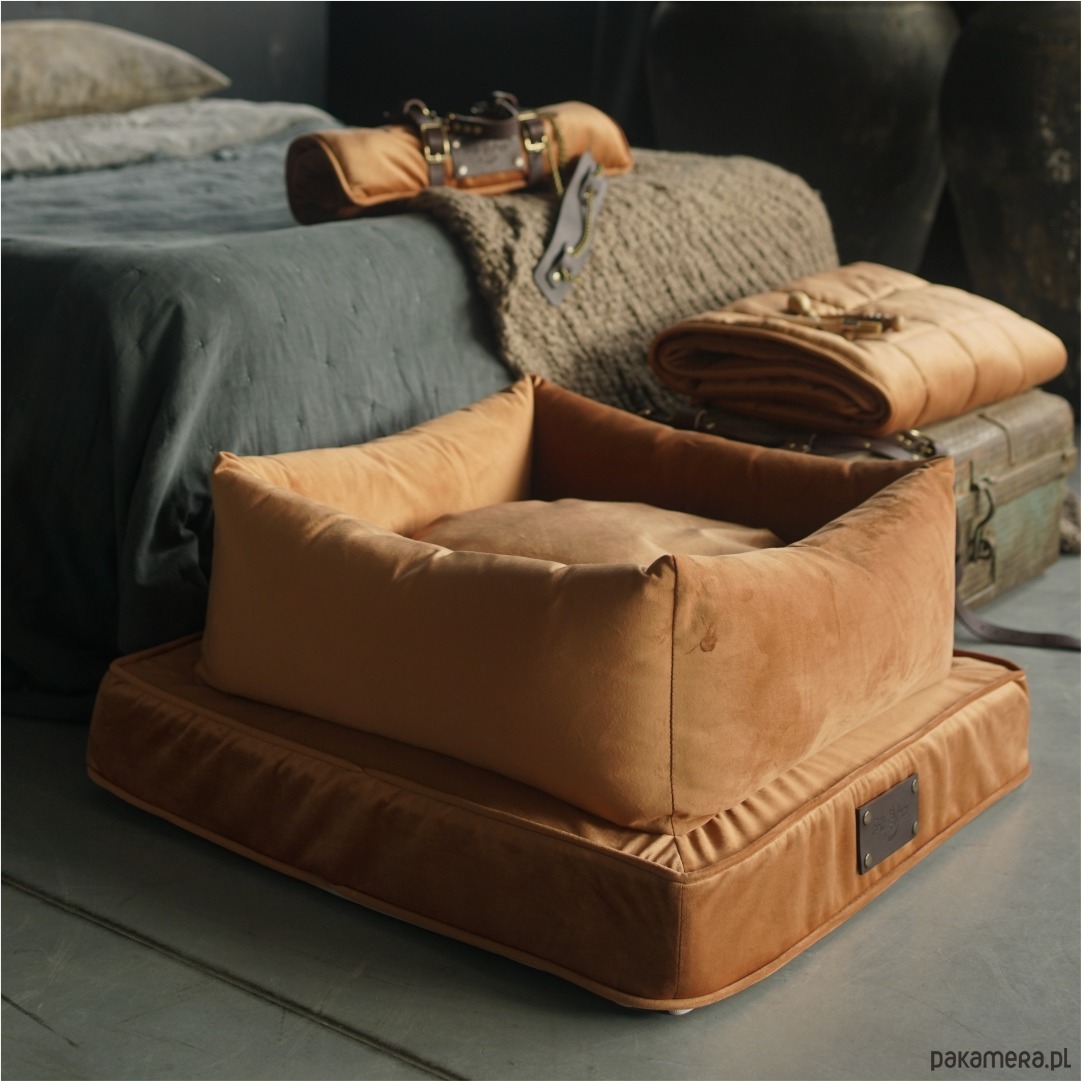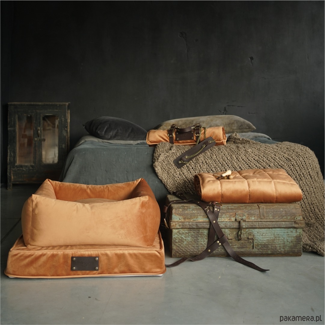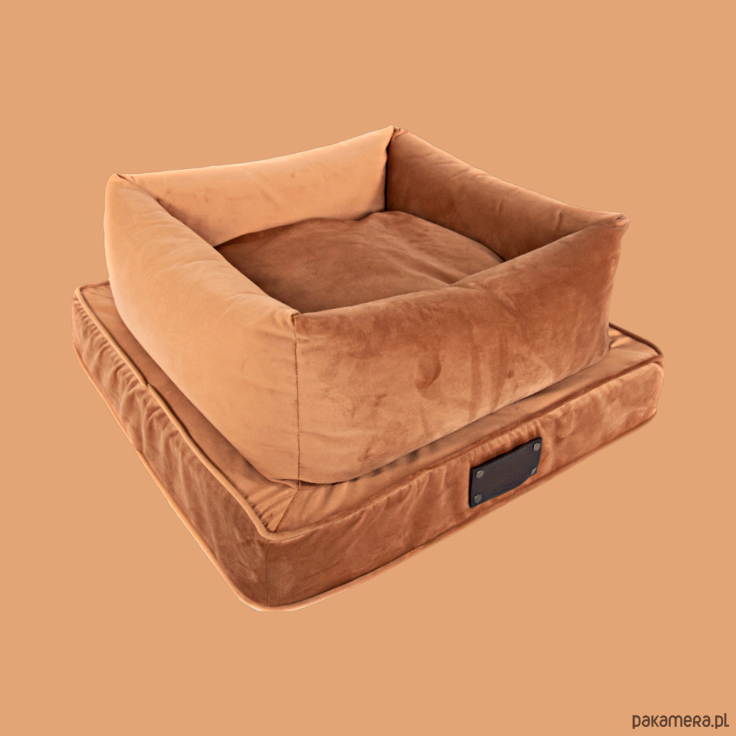 Legowisko to nasze pierwsze autorskie posłanie – dopieszczone pod każdym możliwym względem. Komfortowe legowisko, z podstawą wykonaną z pianki, wyposażone w miękką poduszkę. W zależności od preferencji pupil może leżeć na miękkiej poduszce lub po jej wyjęciu na twardszym materacu. Całość obszyta wysokiej jakości welurem tapicerskim, przyozdobionym metką z naturalnej skóry. Pokrowiec można w całości ściągnąć i wyprać w pralce.