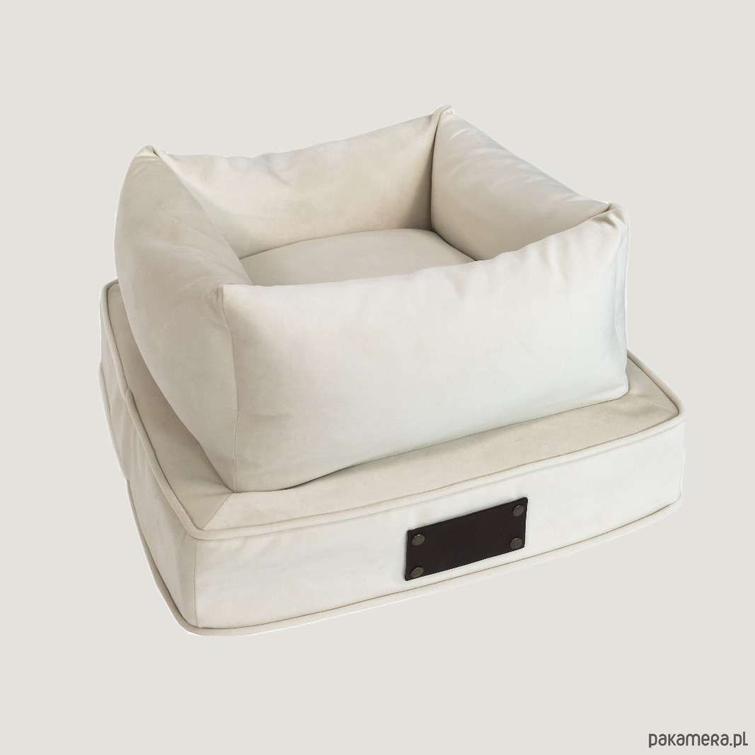 Legowisko to nasze pierwsze autorskie posłanie – dopieszczone pod każdym możliwym względem. Komfortowe legowisko, z podstawą wykonaną z pianki, wyposażone w miękką poduszkę. W zależności od preferencji pupil może leżeć na miękkiej poduszce lub po jej wyjęciu na twardszym materacu. Całość obszyta wysokiej jakości welurem tapicerskim, przyozdobionym metką z naturalnej skóry. Pokrowiec można w całości ściągnąć i wyprać w pralce.
